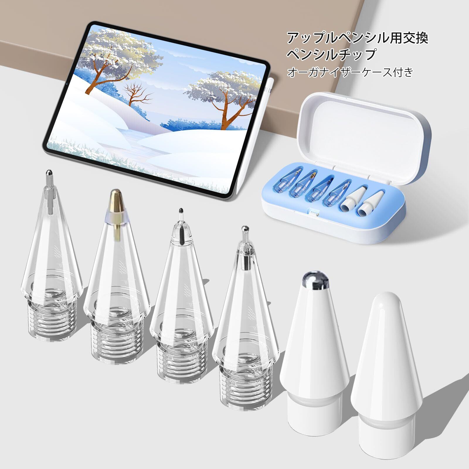 [収納ケース付きペン先] ABS + TPU製の収納ケース付きのニードルペンチップ、6 in 1、4 in 1の2種類セットから選べます。iPad ペンシルペン先ケースは鉛筆のペン先をより整理整頓し、紛失や破損を防ぎます