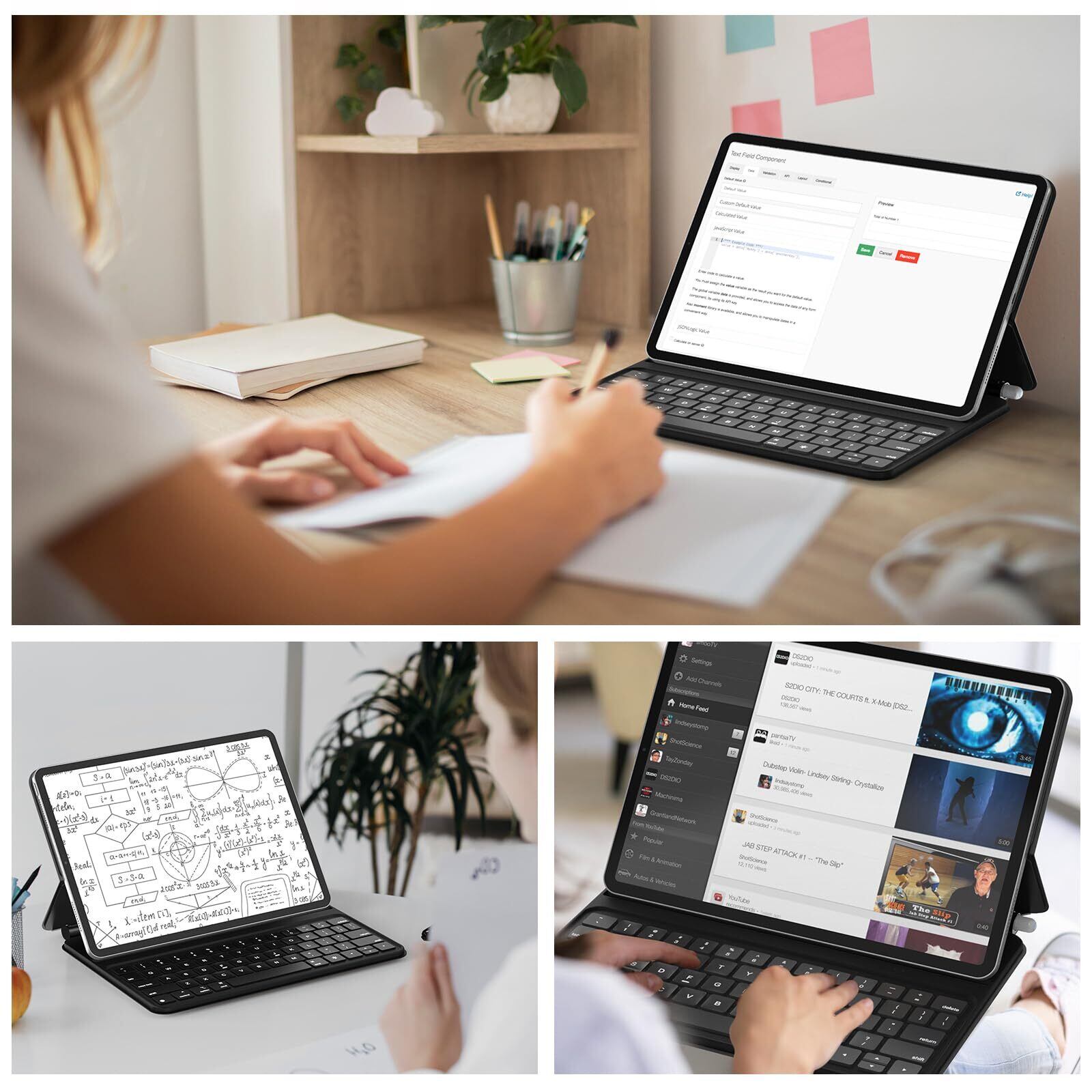【多機能で便利な使用モード】キーボードと組み合わせてタイピングモード、キックスタンドを活用した鑑賞モード、スケッチモード、リーディングモードなど、複数の使用モードでiPadを最大限に活用できます。どのようなシーンでも快適にiPadを操作することが可能です。