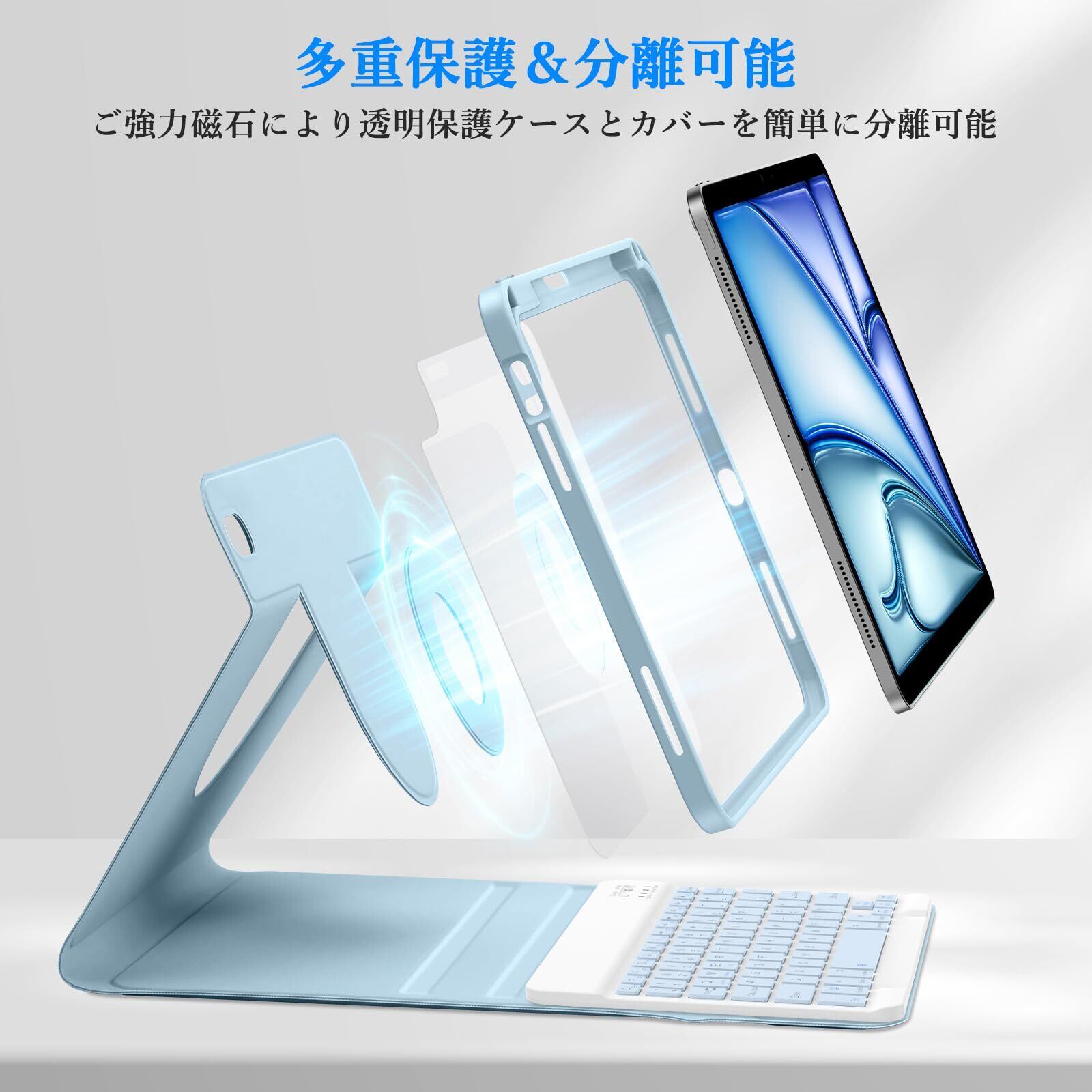 2025 iPad Air第7世代(M3)&2024 Air第6世代(M2) 11インチ適用 キーボード ケース iPad Air 4th/5th/iPad Pro 11 1st/2nd/3rd/4th通用 一台三用 横置き 縦置き 分離式ケース ワイヤレス キーボード付きカバー 強力磁石 耐衝撃 多角度調整 透明 傷つけ防止カバー ブルー
