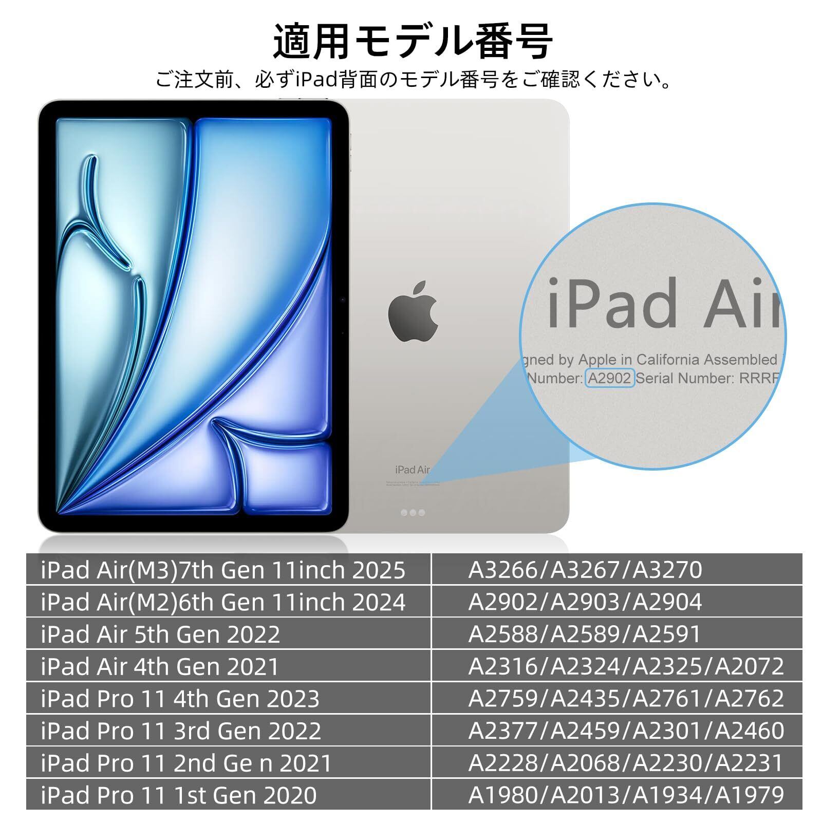 ✦✦【互換性への注意】このキーボードケースは2025発売するiPad Air第7世代(M3)11インチと2024発売するiPad Air第6世代(M2)11インチ、iPad Air第4/5世代 10.9インチ、iPad Pro 11第4/3/2/1世代11インチに通用します。※iPad Pro11 11インチ(M4)2024は適用しません。ご購入前に必ずご確認ください。適用モデル番号は2025iPad Air M3 11インチ(A3267 A3270)、2024 iPad Air第6世代11インチ(A2899/A2902)、2020-2022iPad Air第5/4世代(A2588/A2589/A2591/A2316/A2324/A2325/A2072)、2018-2022 iPad Pro11第4/3/2/1世代(A2759/A2435/A2761/A2762/A2377/A2459/A2301/A2460/A2228/A2068/A2230/A2231/A1980/A2013/A1934/A1979)です。