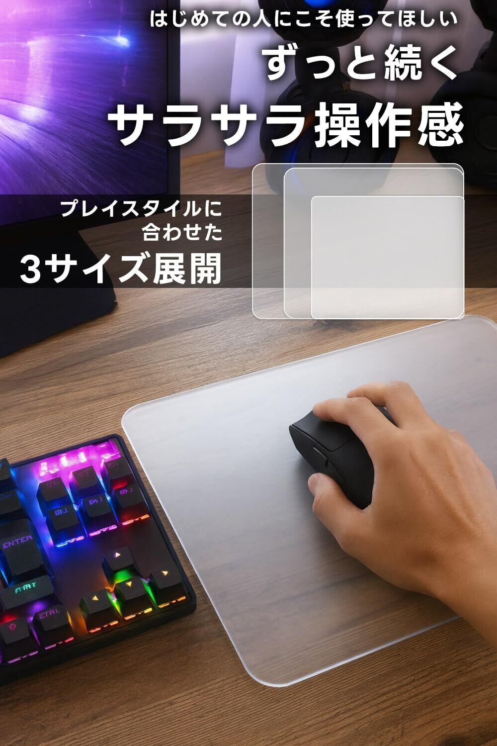 [JUREMI] ガラスパッド マウスパッド ガラス 【はじめての人にこそ使ってほしい、ずっと続くサラサラ操作感。】[プレイスタイルに合わせた3サイズ展開xFPSなどのゲームにオススメ(厚み3.2mm)] (350×260mm)