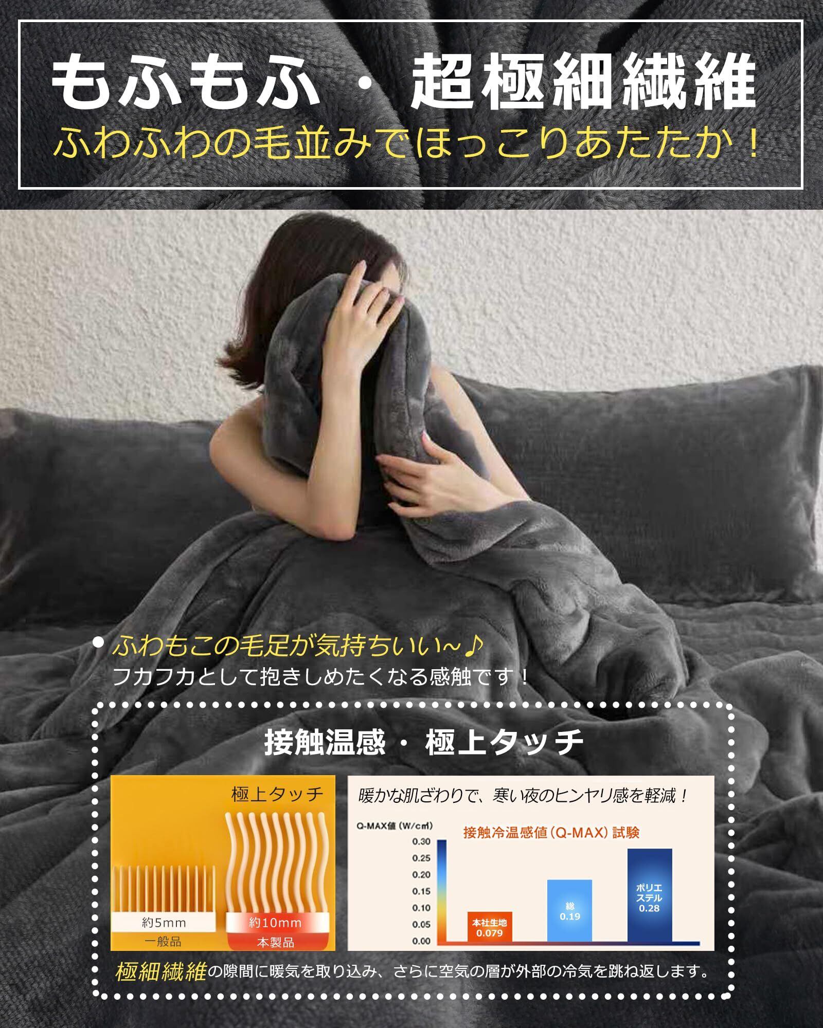 【暖かさが格段にアップ 一秒で虜になる!ふんわり、しなやか上質の肌触り】あったか掛け布団の表生地はマイクロファイバー繊維を高密度に編み上げ、ふわふわ、なめらかな肌触りとあったかさを実現!あったか布団のフランネル生地は人体が放出するエネルギーを吸収し、布団内部の温度を上げ、身体の熱を保持します。底冷えする冬は、背中から足までぽっかぽかです!さっと布団に被せるだけ、布団にはいった瞬間から、ふわふわの暖かさを感じられます。冬布団のフランネル生地は、何度も整理加工され、毛羽が簡単に抜ける問題が解決されています。長期間使用しても、触れた感触は依然として温かさを保っています。