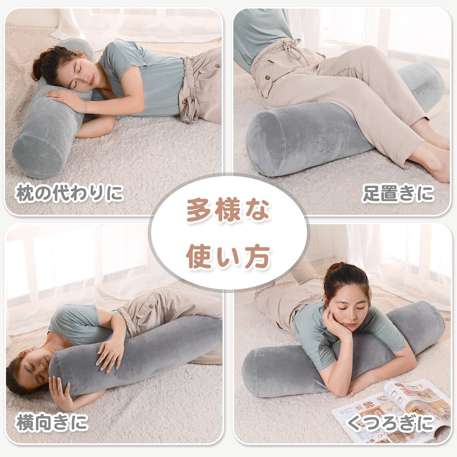 【新着商品】抱き枕 クッション 長い 気持ちいい抱き枕 もちもち 枕 ロング 120cm 円柱形 グレー カバー付き ふんわりボア生地