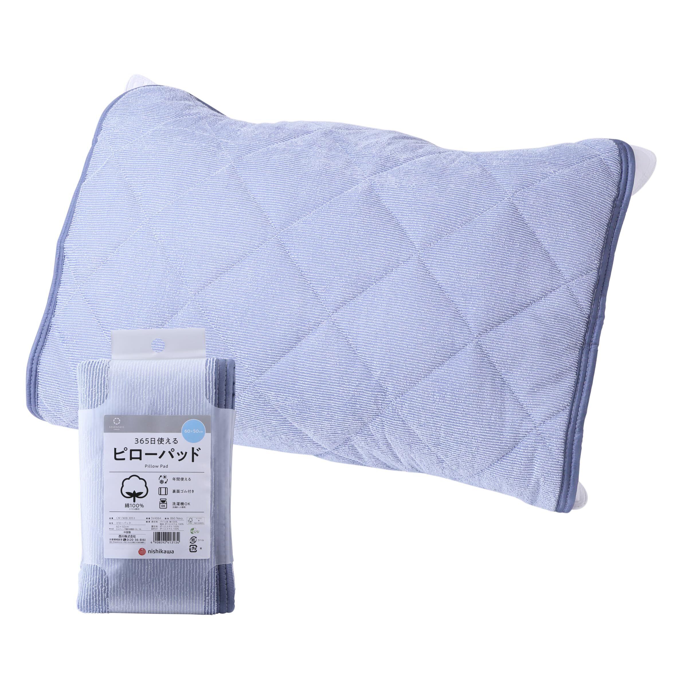 nishikawa【西川】 SEVENDAYS パイル地 枕パッド 60X50cm 洗える 綿100% ピローパッド 365日使える 1年中使える タオル地 着脱が簡単 ゴムバンド ネイビーSV4064 CM74083053