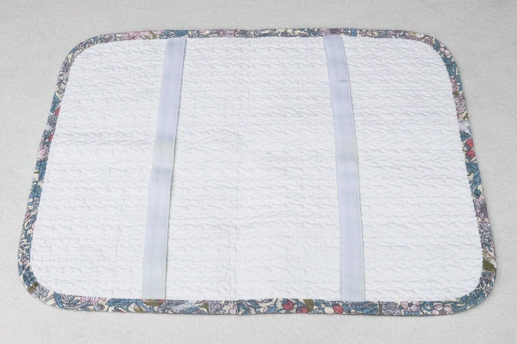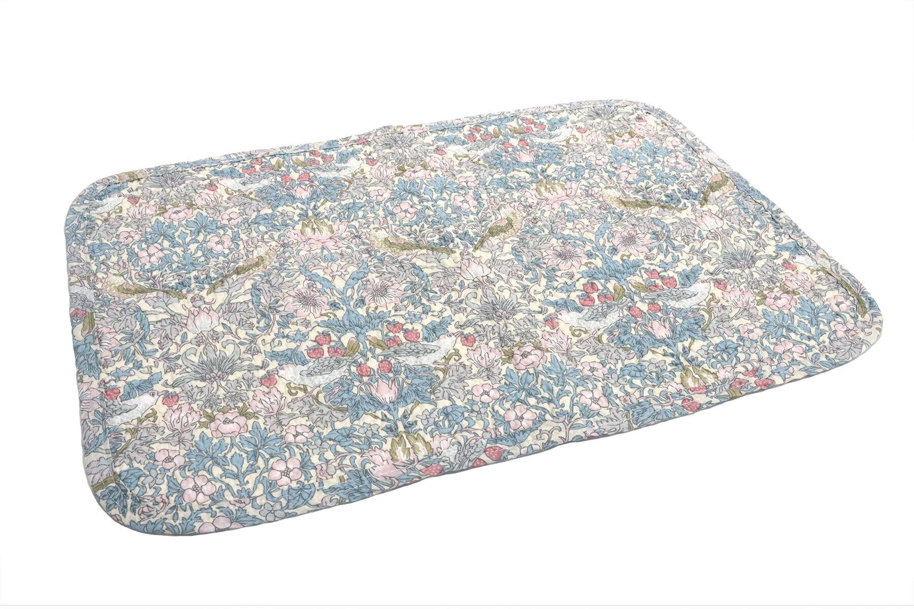 いちご泥棒柄は、V&Aコレクションの中でも人気の高い柄です。ウィリアム・モリスが1883年に内装用ファブリックのためにデザインしました。お庭のいちごを盗みにきたツグミ(小鳥)がモチーフの可愛らしいデザインです。綿生地を製品になった状態で水洗い加工を施すウォッシュキルト加工により、立体的な素材感が生まれ、肌触りがやさしく風合いも良くなっています。ご家庭の洗濯機もしくは、手洗いで洗える製品です。