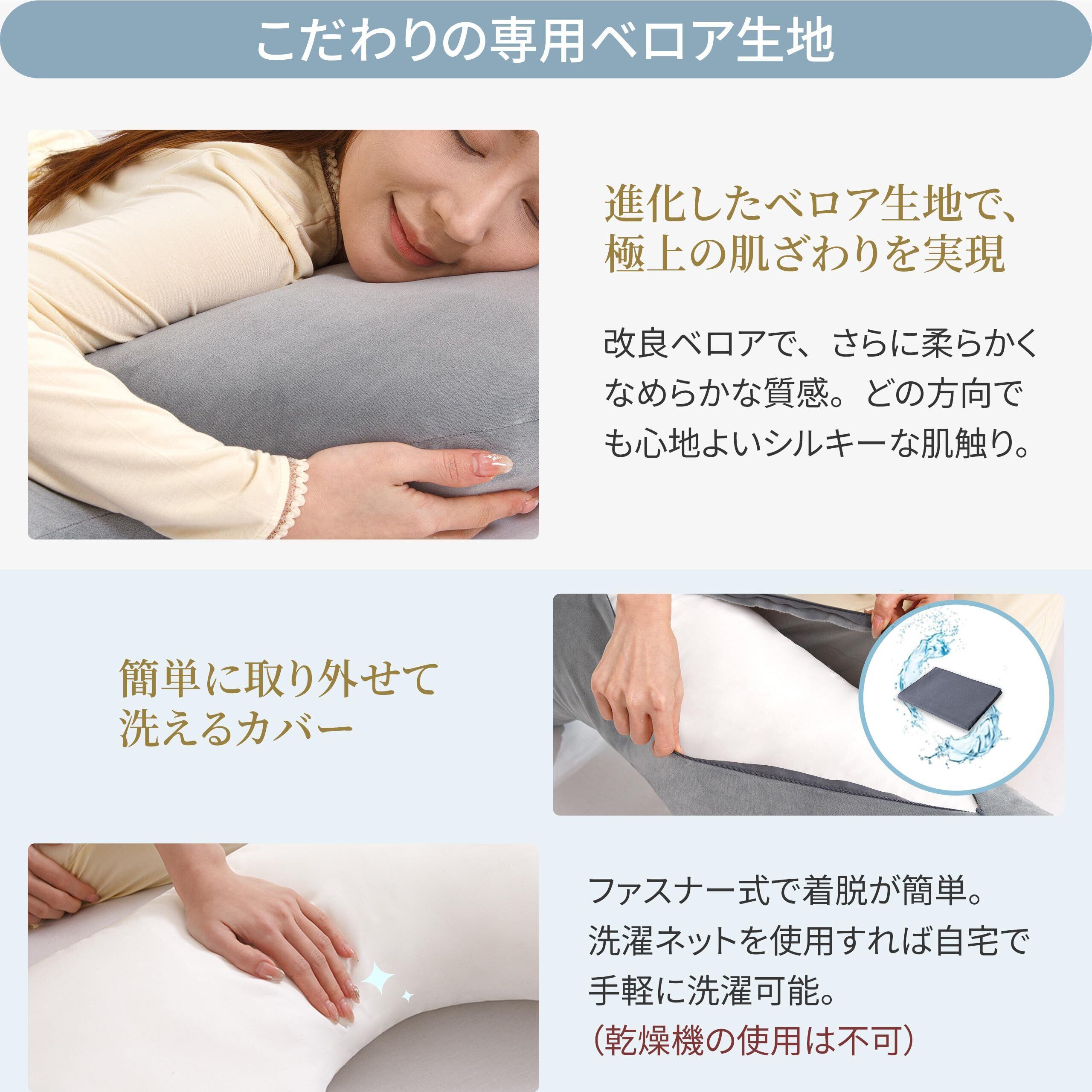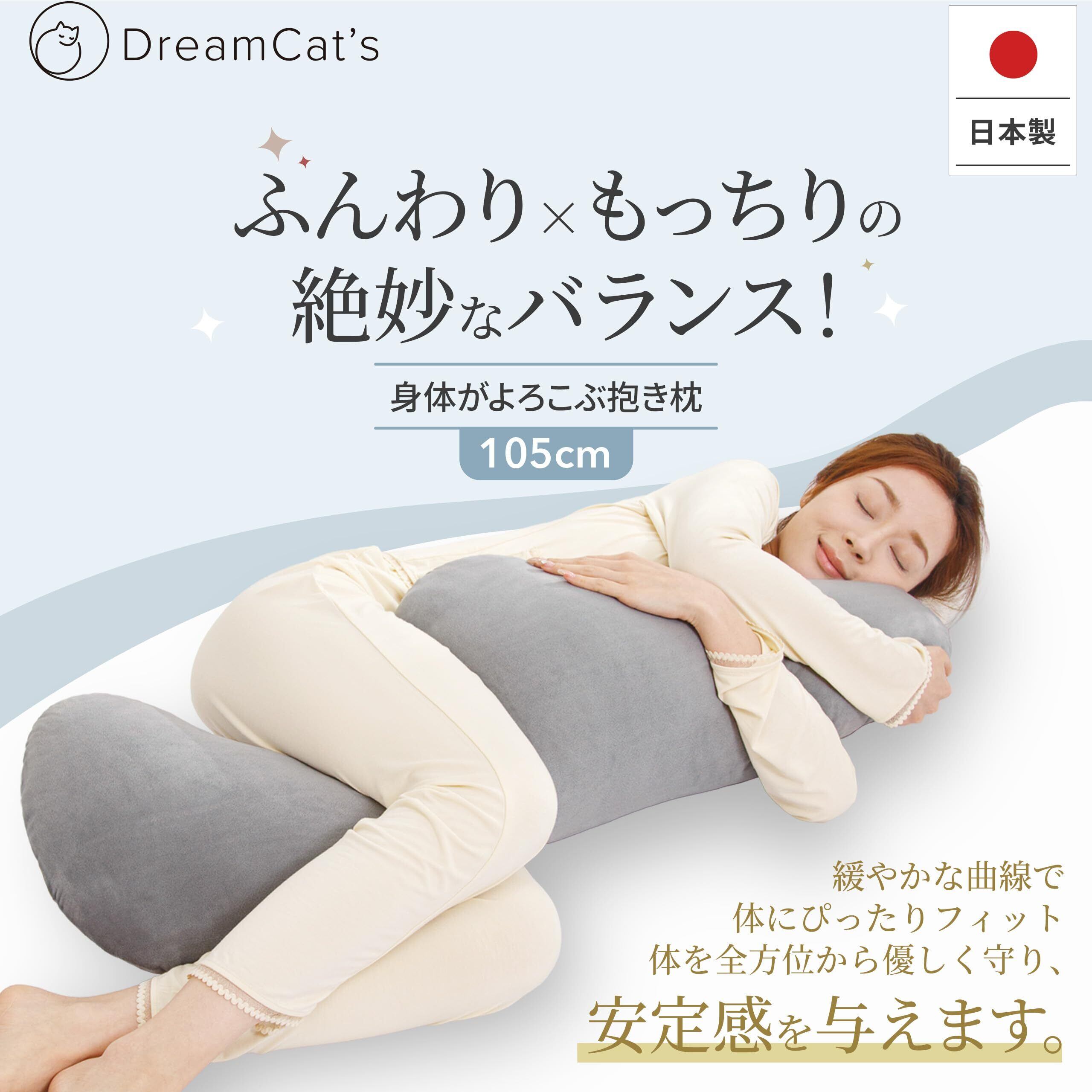 【在庫セール】DreamCat's 抱き枕 だきまくら 日本製 男女兼用ふわふわ もちもちの触感 ボリューム感 洗える 快眠クッション 横向き寝対応 105x30cm (グレーカバー付き)