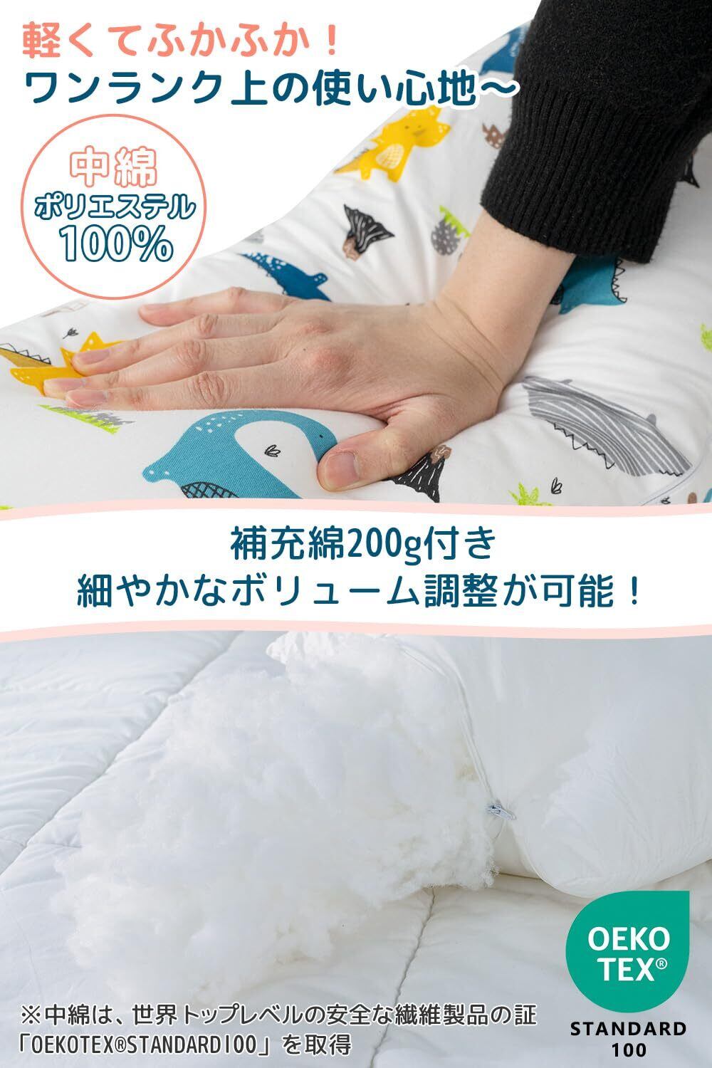 【補充綿付き】200gの補充綿が付くので、高さやボリュームの細かな調整が可能に!