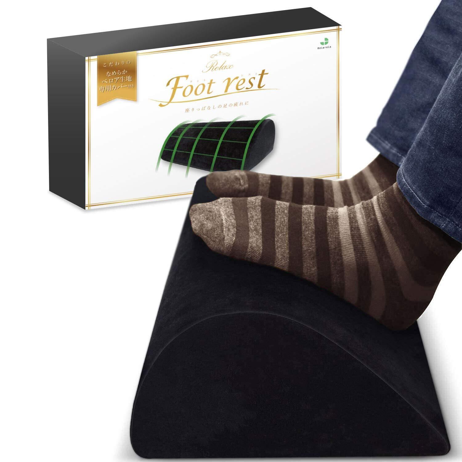 【在庫セール】フットレスト デスク下 足置き 【硬めでしっかり支える】足枕 低反発 クッション デスクワーク 足置き台 幅43㎝ 大きいサイズ ReLarela (ブラック)