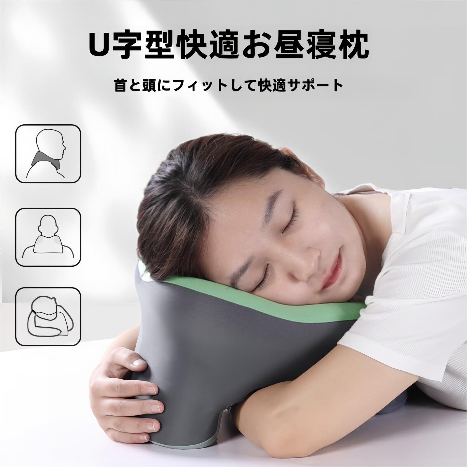 【多機能デザイン】昼寝やオフィスでのお昼寝枕、車内の首枕、飛行機でのネックピローとして幅広く活躍。うつ伏せ寝でも化粧崩れしにくく、デスクワーク中の休憩にも最適です。ミニ枕サイズで使いやすく、昼寝枕やネックピローおすすめ商品を探している方にぴったり。