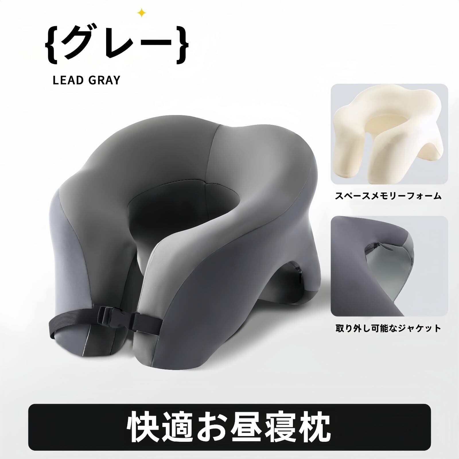午睡ネックピロー 昼寝枕 コンパクト 携帯枕 旅行・オフィス用 メモリーフォーム 首枕 軽量 グレー 仮眠枕 うつぶせ枕