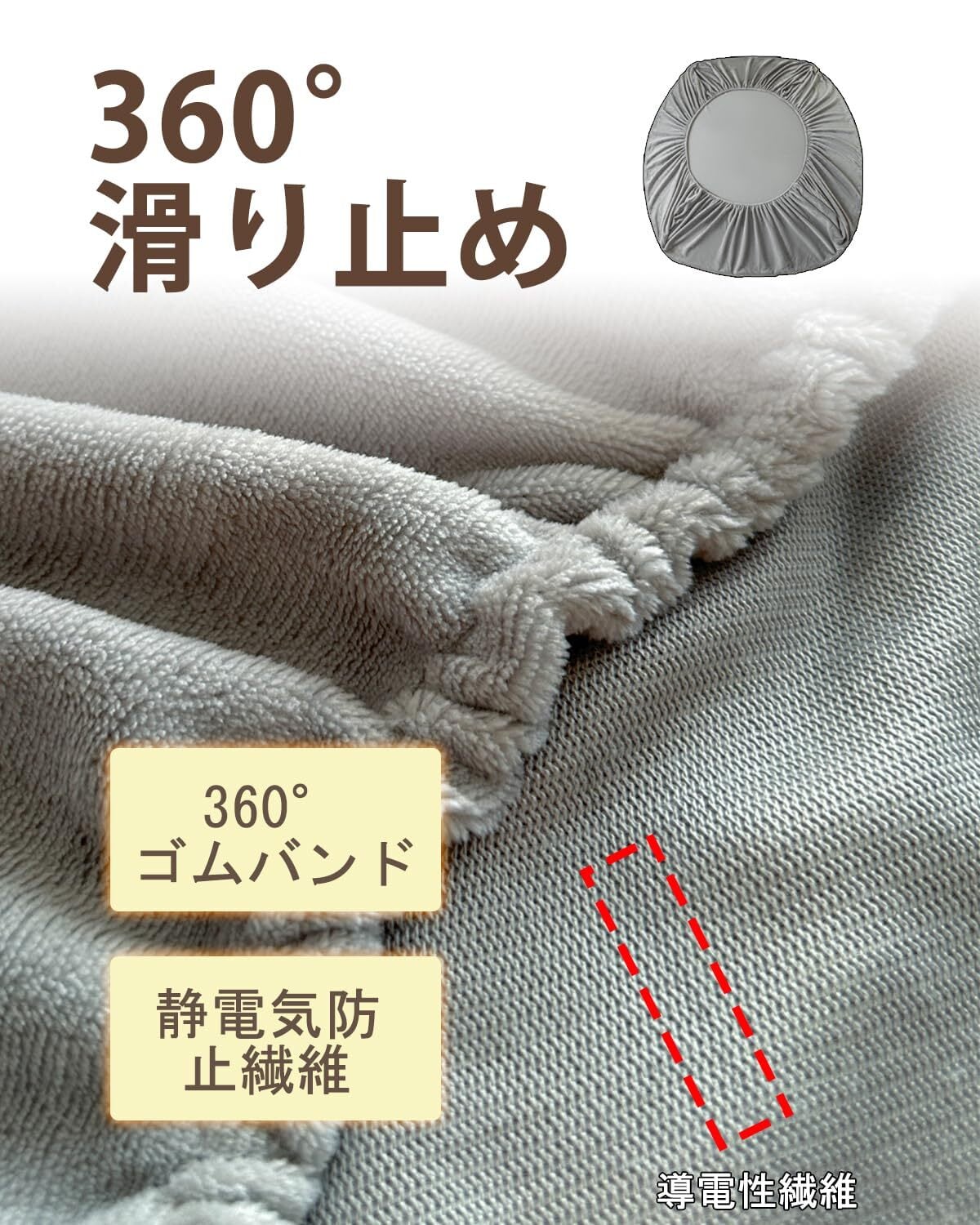 【静電気防止】生地の裏面には導電性繊維を使用し、冬場の乾燥摩擦による静電気を効果的に軽減。不快なパチパチ感や圧迫感を軽減します。