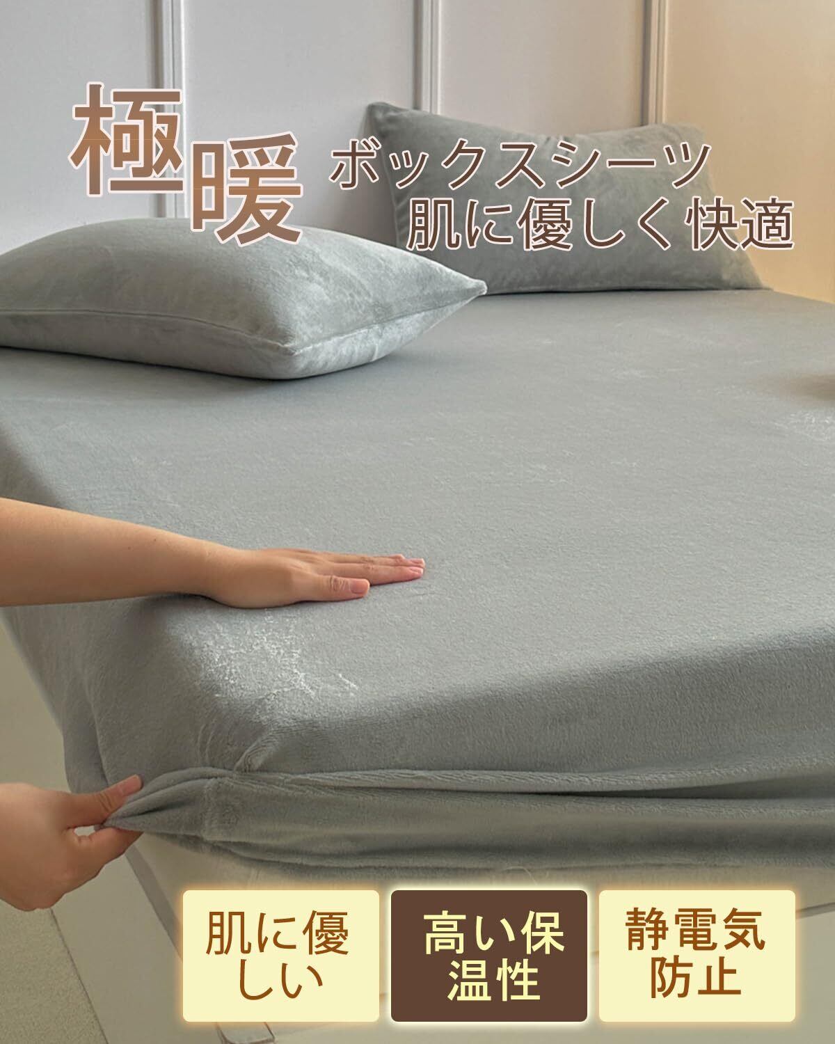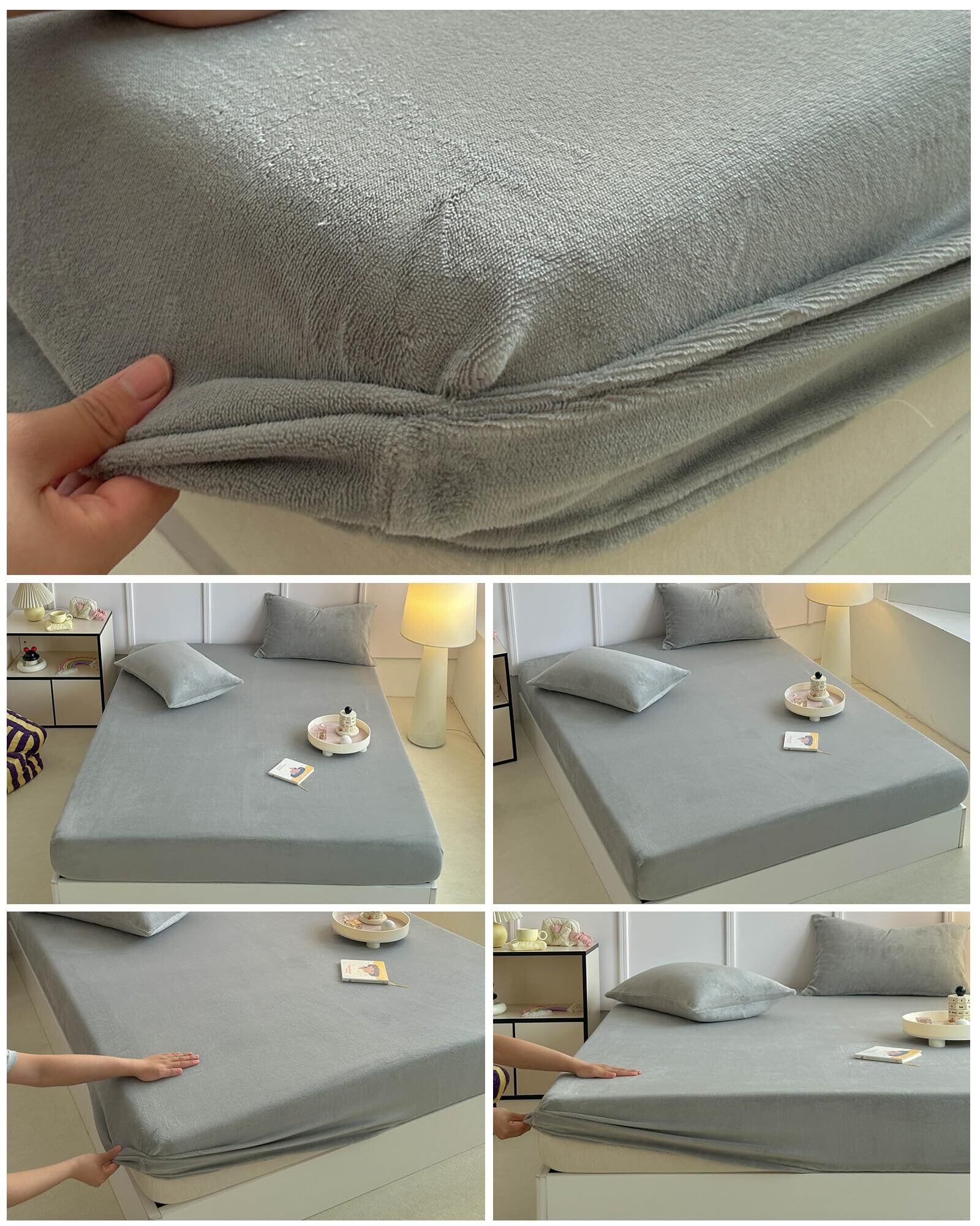 ボックスシーツ 冬用 あったか 静電気防止 フランネル マイクロファイバー 毛玉なし なめらか 秋冬用 丸洗いOK 着脱簡単 防寒対策 マチ部分約30cm (シングル・100X200cm ライトグレー)