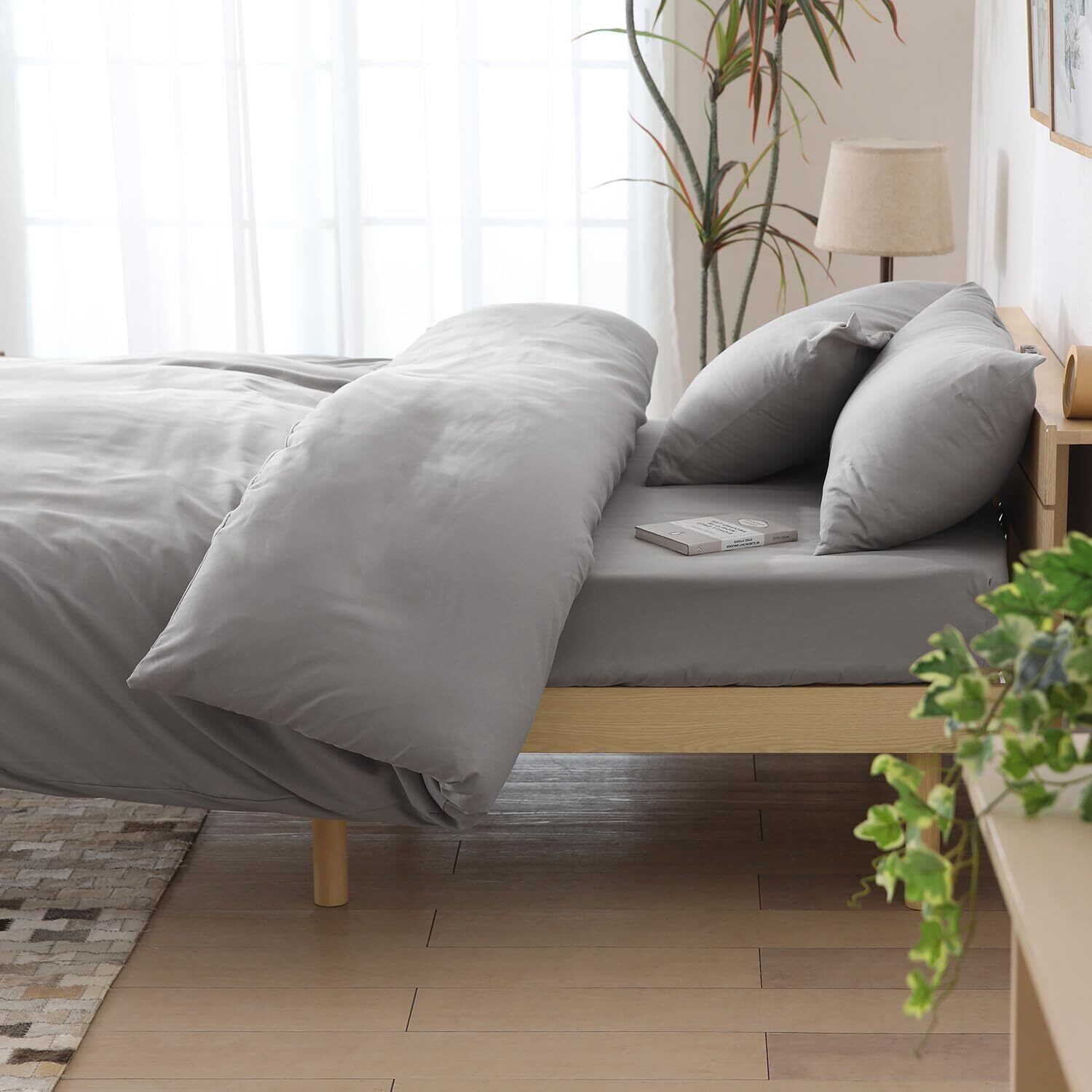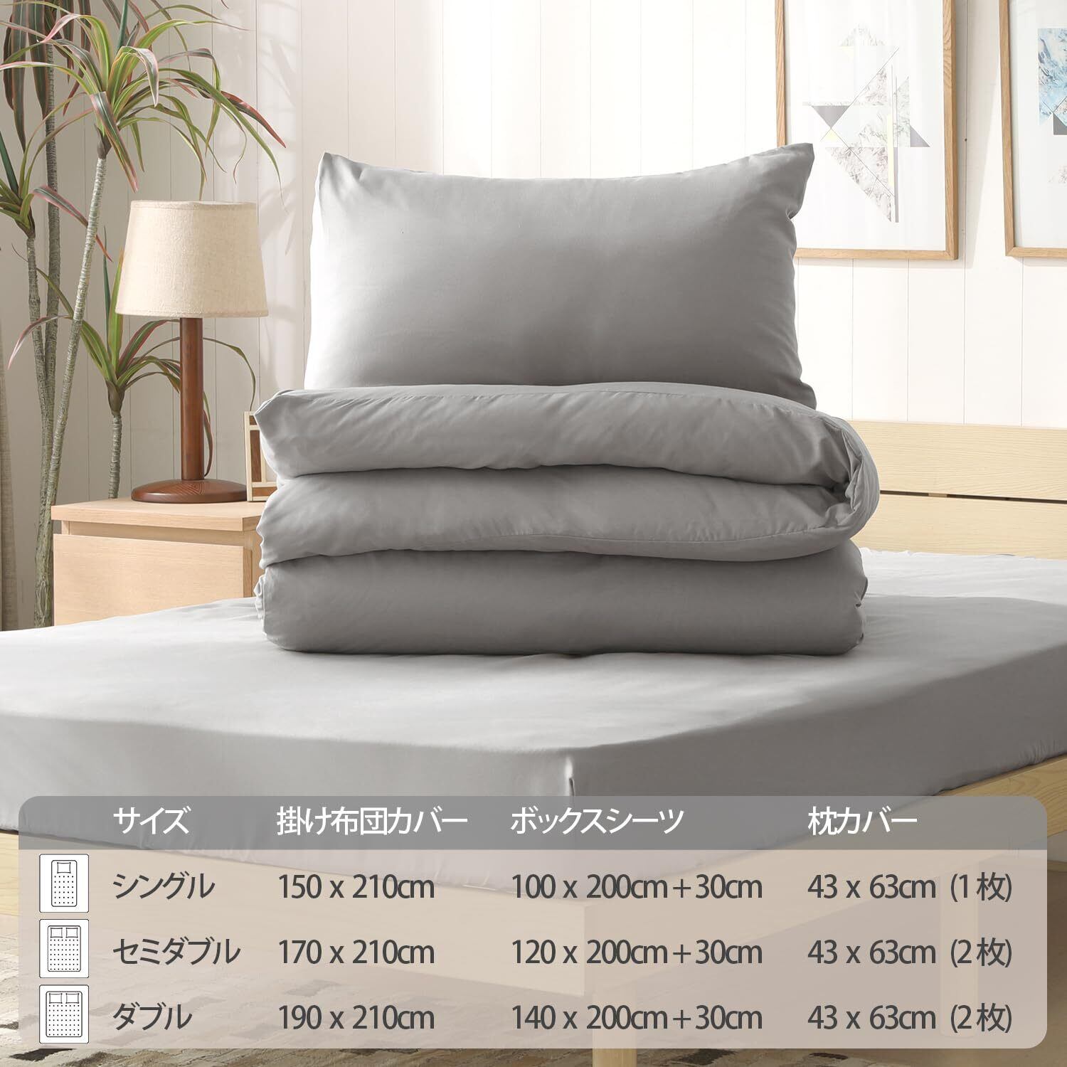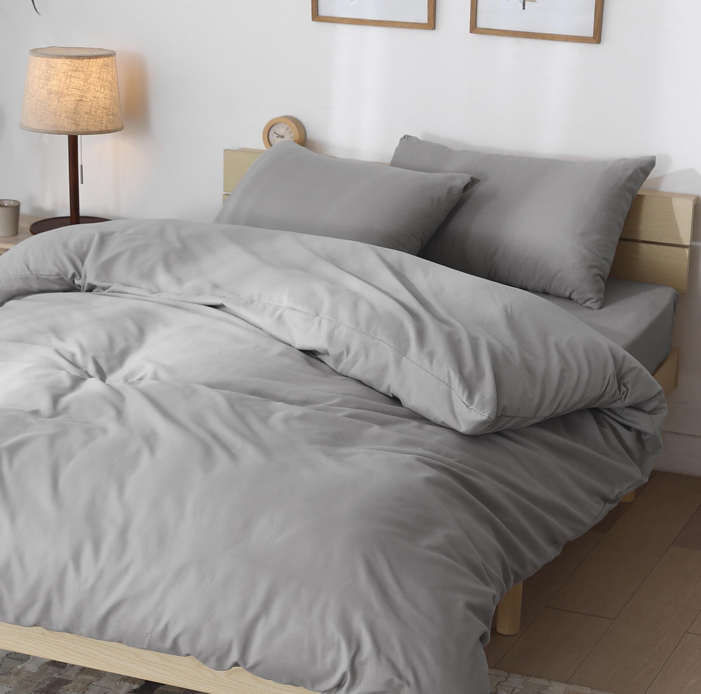 布団カバー シングル 3点セット 寝具カバーセット 掛け布団カバー ボックスシーツ 枕カバー 洗える 洋式・和式兼用 丸洗いOK 吸水速乾 抗菌 無地 洗い替え 肌に優しい オールシーズン (シングル・3点セット・グレー)
