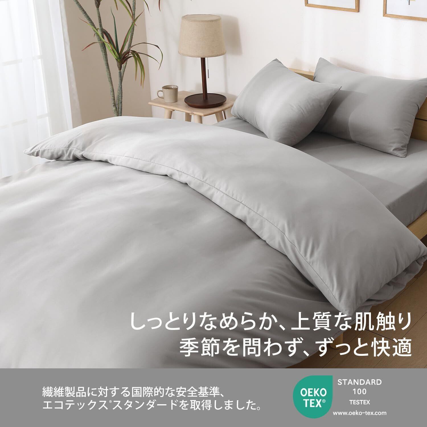 【通年使える快適性】夏: 高い通気性・吸放湿性が汗や湿気を素早く逃がし、サラッと爽やかな肌触りで寝苦しさを軽減。冬: 細かい繊維構造が暖かい空気の層を保持。優れた保温性で布団の中をポカポカに保ちます。
