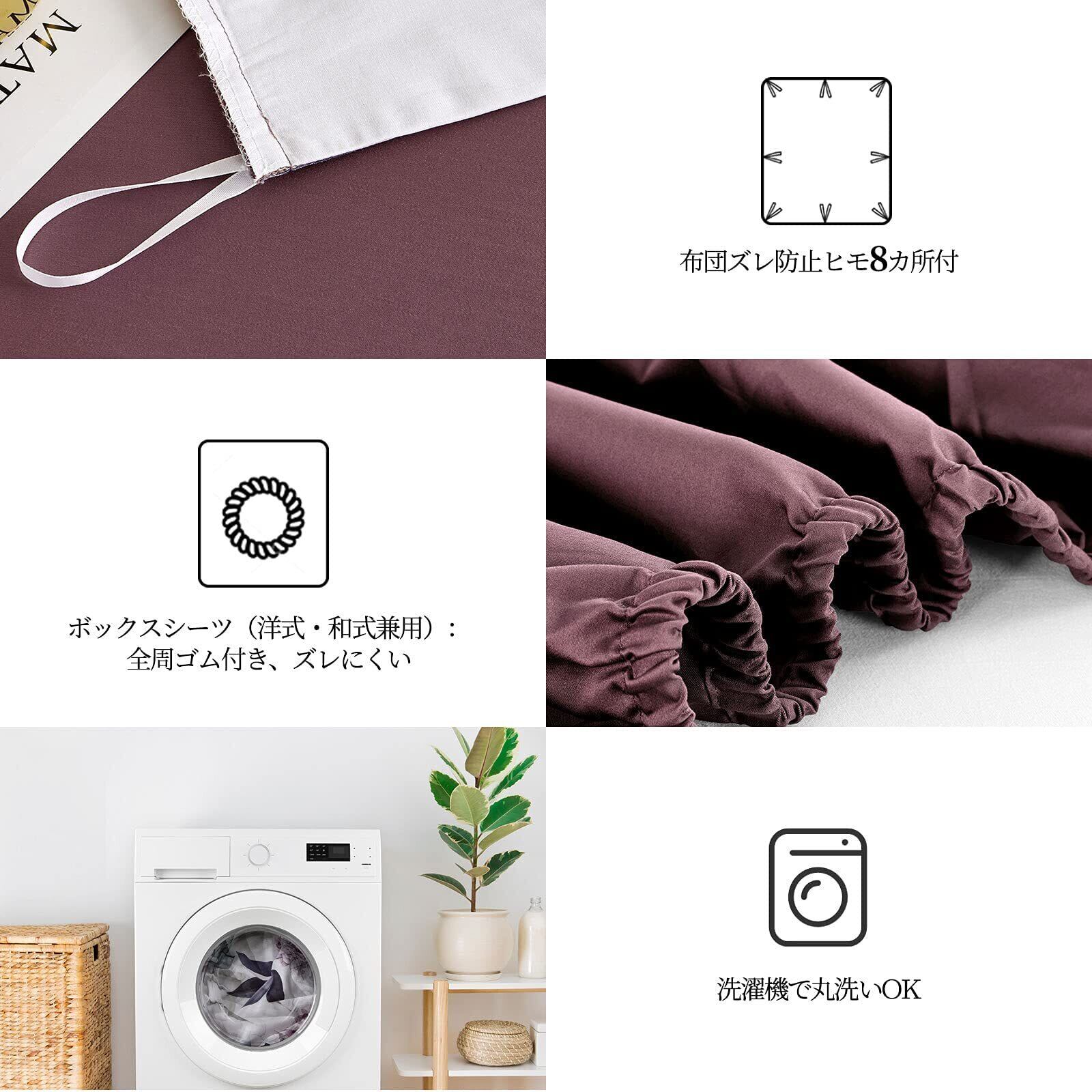 【心を込めた設計】枕カバー:合わせ式丨掛ふとんカバー:片側全開仕様とYKKファスナーを採用、スムーズな開閉と出し入れを実現、8カ所の内ヒモ付きでズレにくい丨ボックスシーツ:全周ゴム付き、和洋兼用
