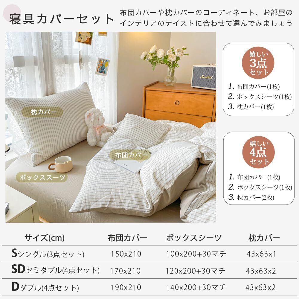 布団カバーセット ストライプ柄 北欧 ins風 両面使える 掛け布団カバー ふとんカバー boxシーツ 寝具カバーセットボックスシーツ 洋式・和式兼用 シングル 3点セットセミダブル ダブル4点セット 柔らか 四季通用 ベッド用 敷き布団用 肌に優しい 柔らか 丸洗いOK 安心 清潔 (コーヒー, セミダブル-4点セット)