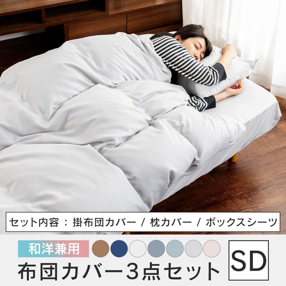【数量限定】アイリスプラザ 寝具カバー3点セット セミダブル 布団カバーセット 洋式ベッド・和式布団兼用 掛け布団カバー ボックスシーツ 枕カバー 丸洗いOK 速乾タイプ ピーチスキン加工 アイボリー BJDCV-3SET-SD
