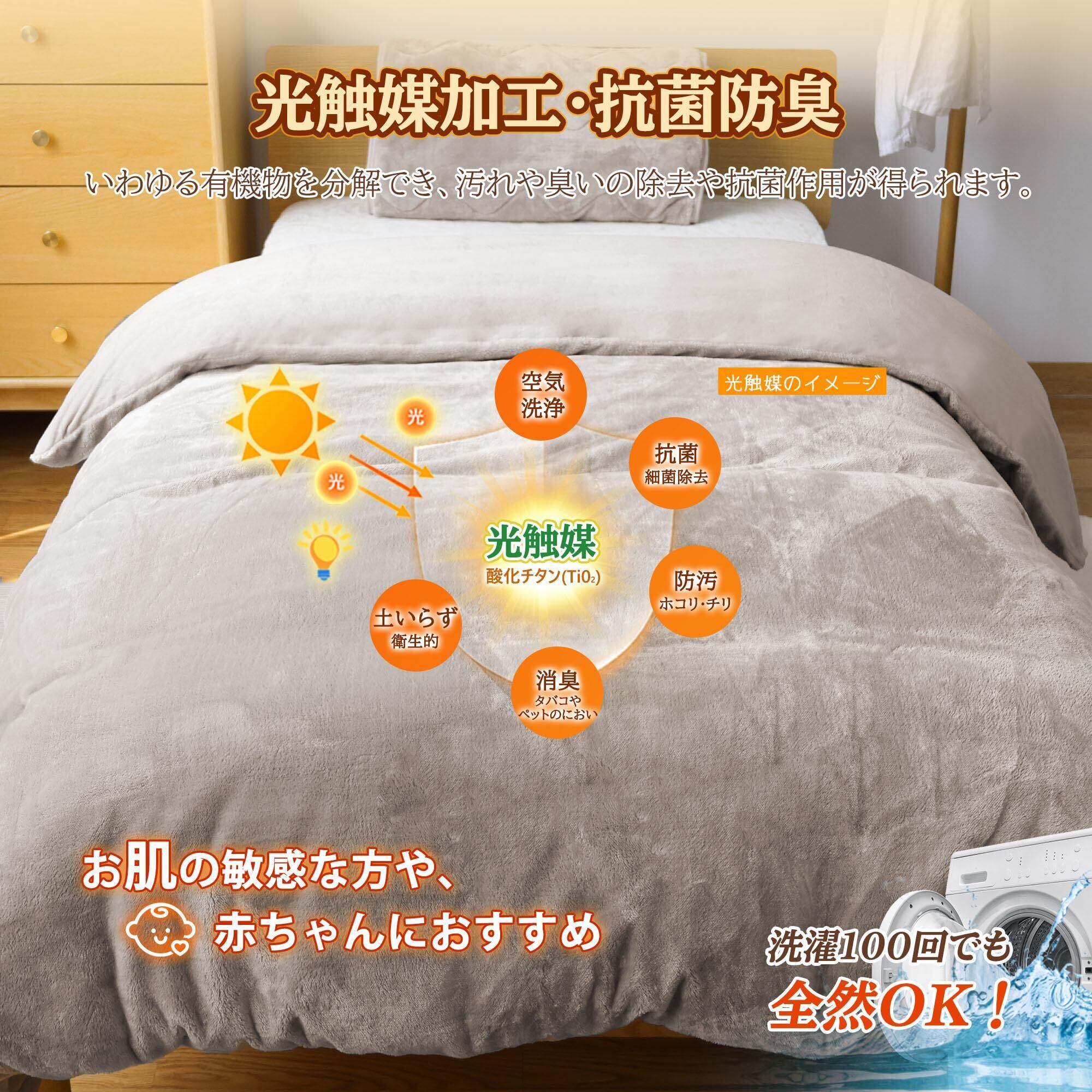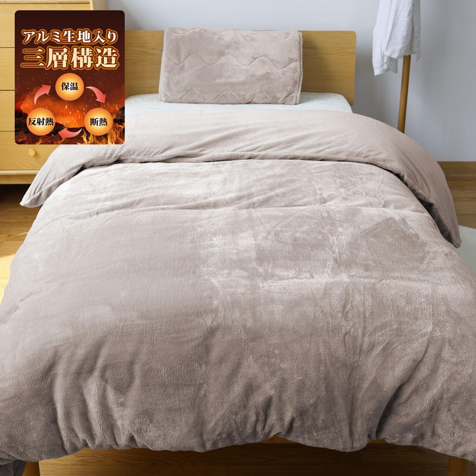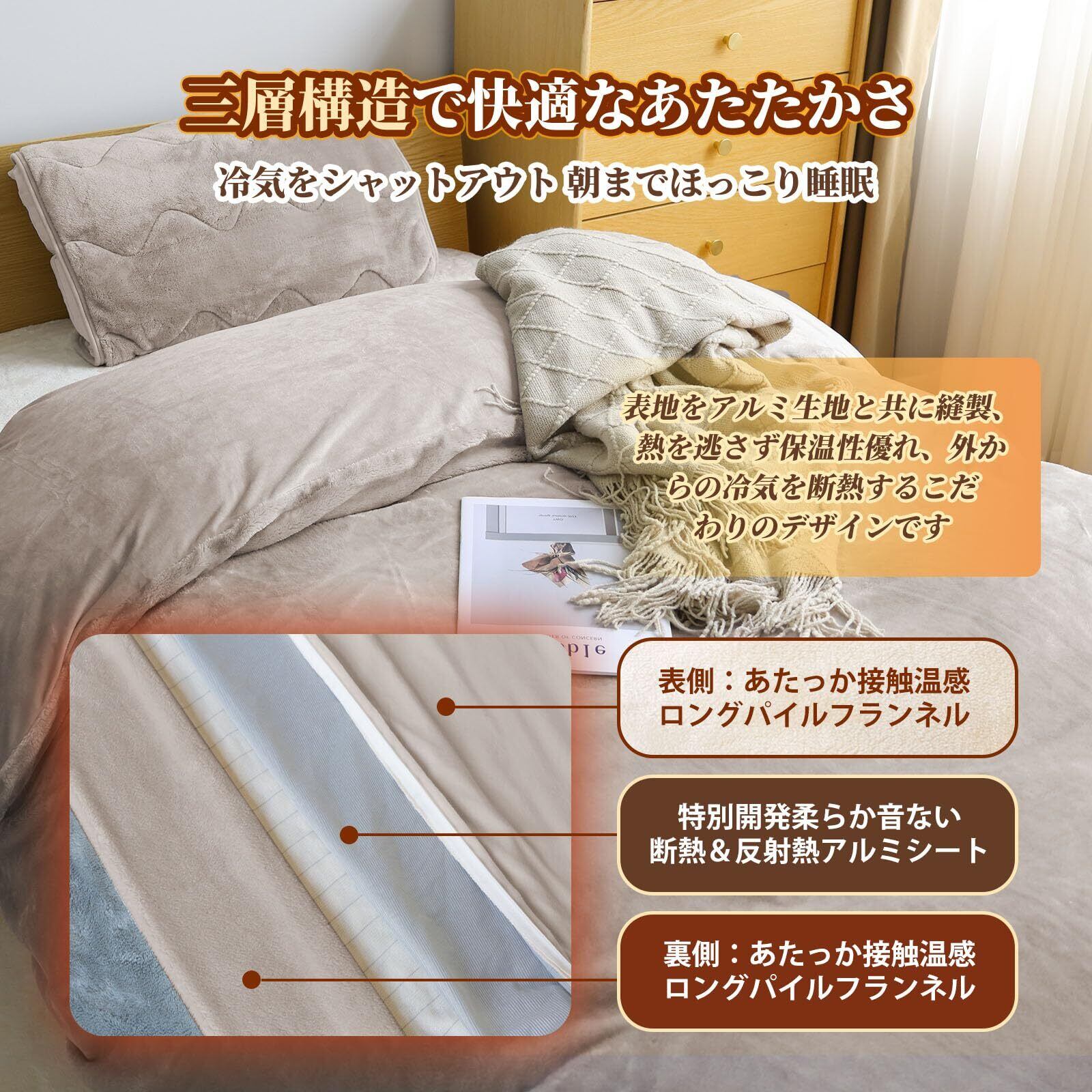 【特価セール】BestOnePlus 【断熱保温・毛布と布団カバー兼用】掛け布団カバー ダブル 羽毛布団カバー 三層構造 アルミシート入り フランネル あったか 秋冬用 マイクロファイバー 2WAY仕様 接触温感 反射熱 YKK全開ファスナー 8箇所スナップボタン 静電気防止 CICA加工 光触媒加工抗菌防臭 洗える 190x210cm グレージュ