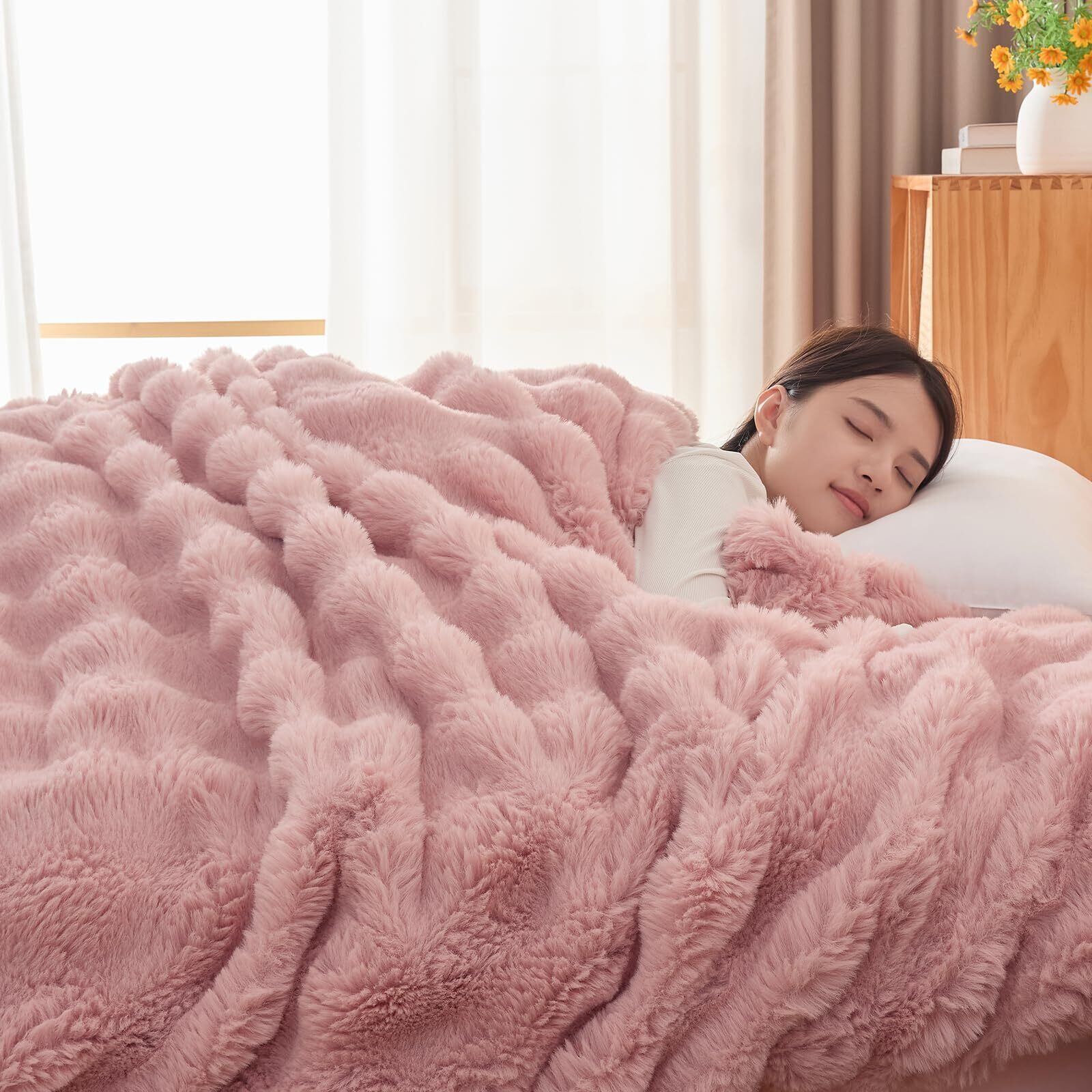【特価セール】Softime 掛け布団カバー ダブル 冬 暖かい 羽毛布団カバー 毛布カバー モコモコラビットファー調 毛布にもなる2WAY仕様 『極暖・プラス5℃蓄熱保温』吸湿発熱 あったか CICA保湿加工 静電気防止 抗菌防臭 エッコテックス認定 スナップボタン8箇所&ダブルファスナー フランネル 掛けふとんカバー 掛けカバー(ダブル・190×210cm ピンク)
