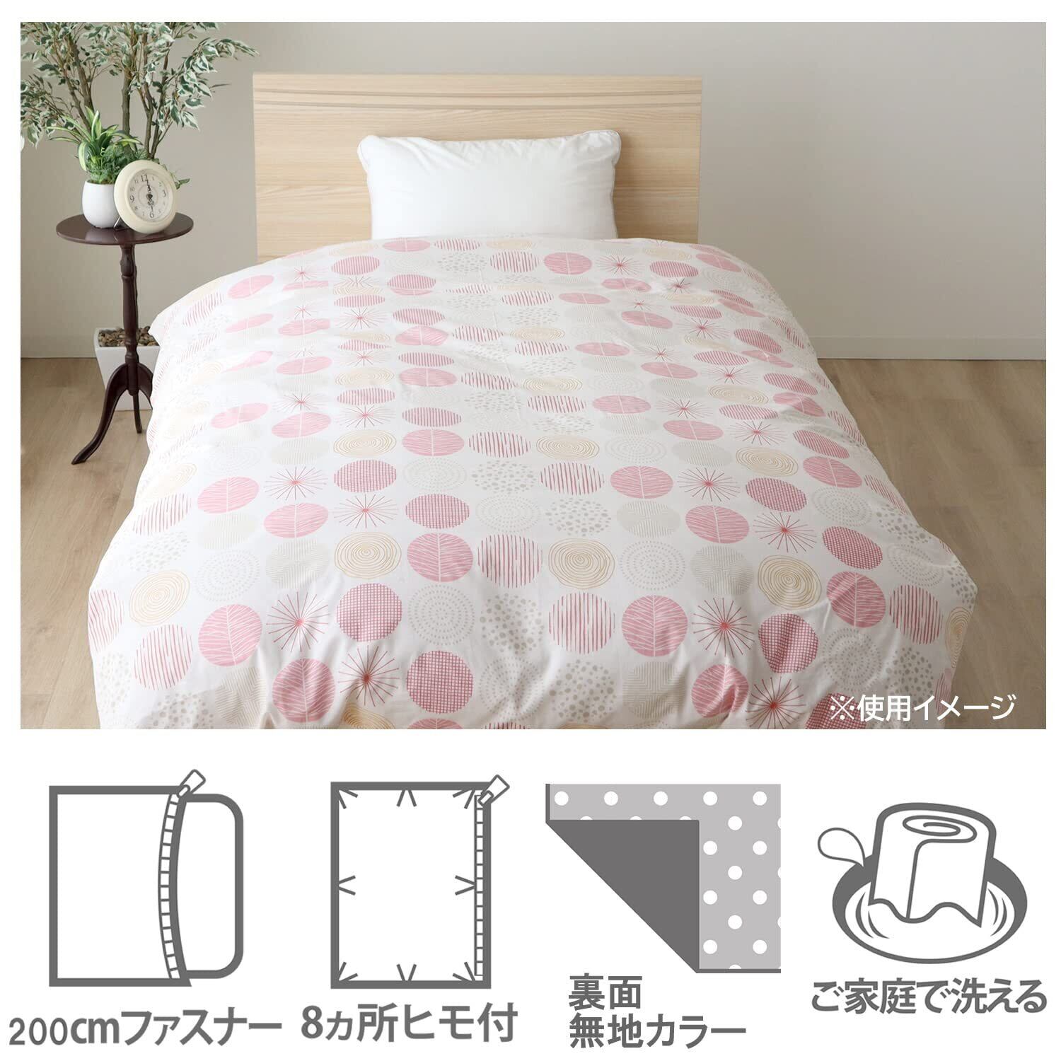メリーナイト 掛け布団カバー 「ナチュラルドット」 ピンク シングル 約150×200cm 綿100% 吸湿性 通気性 心地よい肌触り オールシーズン 洗える CT12014-16