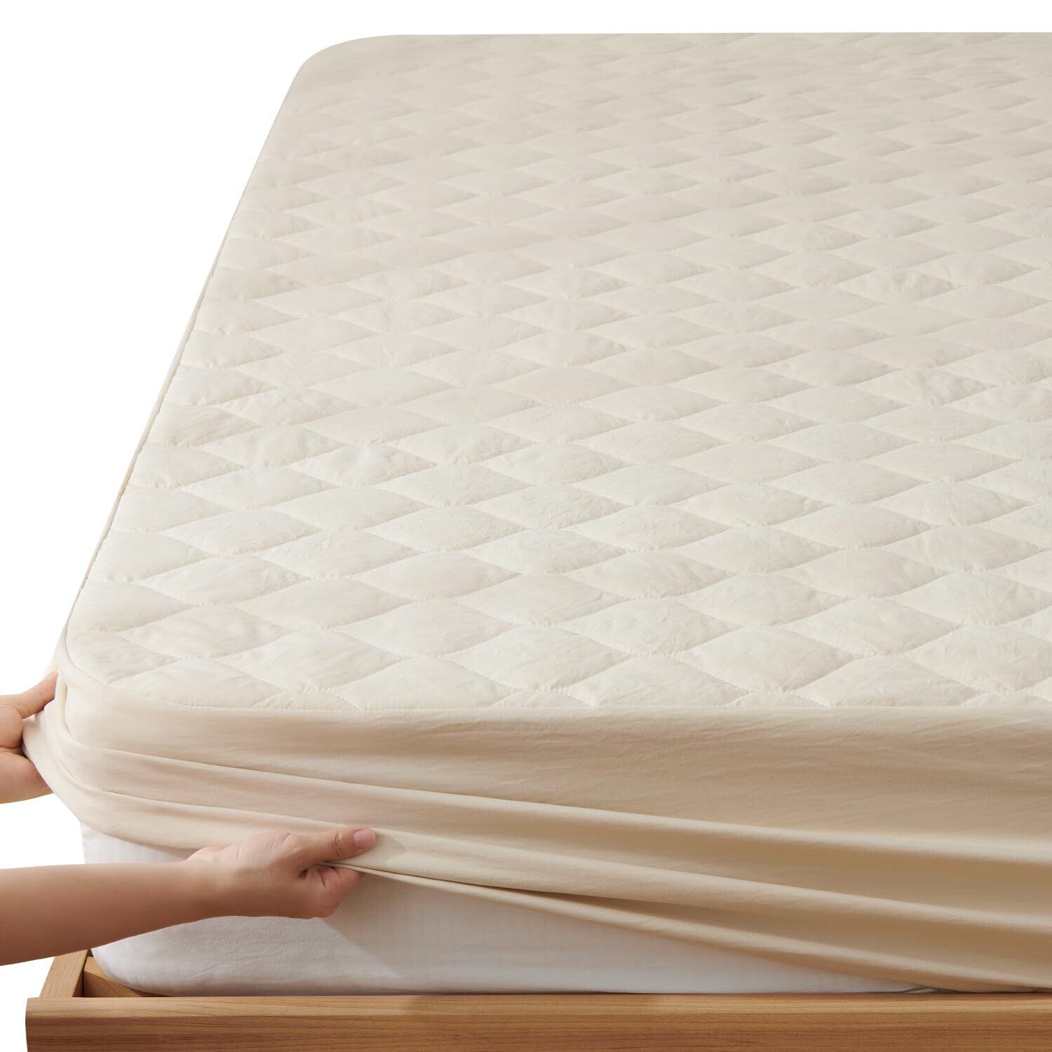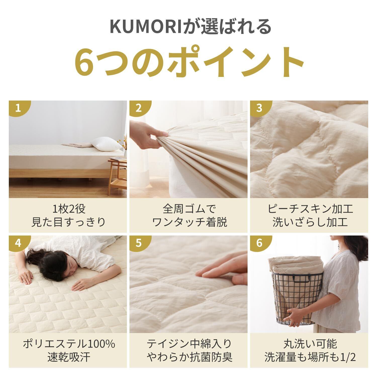 クモリ(Kumori) パッド一体型 ボックスシーツ 洗いざらし 高吸水速乾 1枚2役 ベッドシーツ 敷きパッド 着脱楽々 時短 柔らかい クッション性あり 耐久性が高い お手入れ簡単 洗える オールシーズン (シングル・100X200cm・ベージュ)