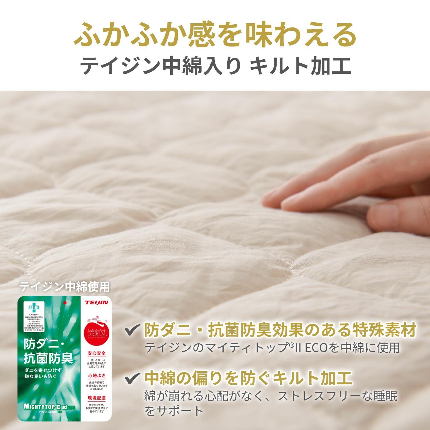 【快適な通気性&速乾性】通気性が抜群で、シーツ内の湿気がこもりにくく、いつでもサラッとした清潔感をキープ。中綿入りながら速乾性が高く、洗濯後すぐに乾き、毎日新鮮な寝具を楽しめます。湿気が気になる季節でも、快適な寝心地を提供します。