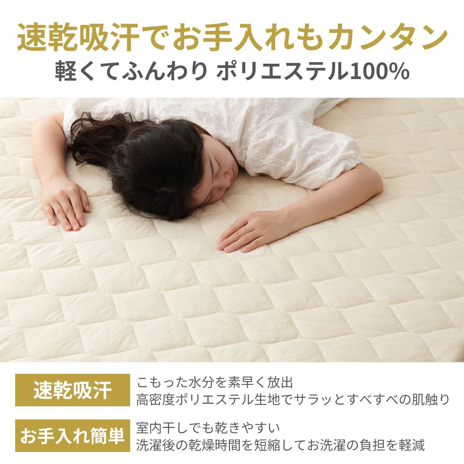 【商品仕様】※サイズ:シングル・100X200cm。※素材:ポリエステル100%。※仕様:全周ズレ防止ゴム付き、25cmまでのマットレスに対応。※産地:中国。※一年中使えるオールシーズン対応:夏は涼しく、冬は温かみが感じられるため、年間を通して安定した寝心地を提供。