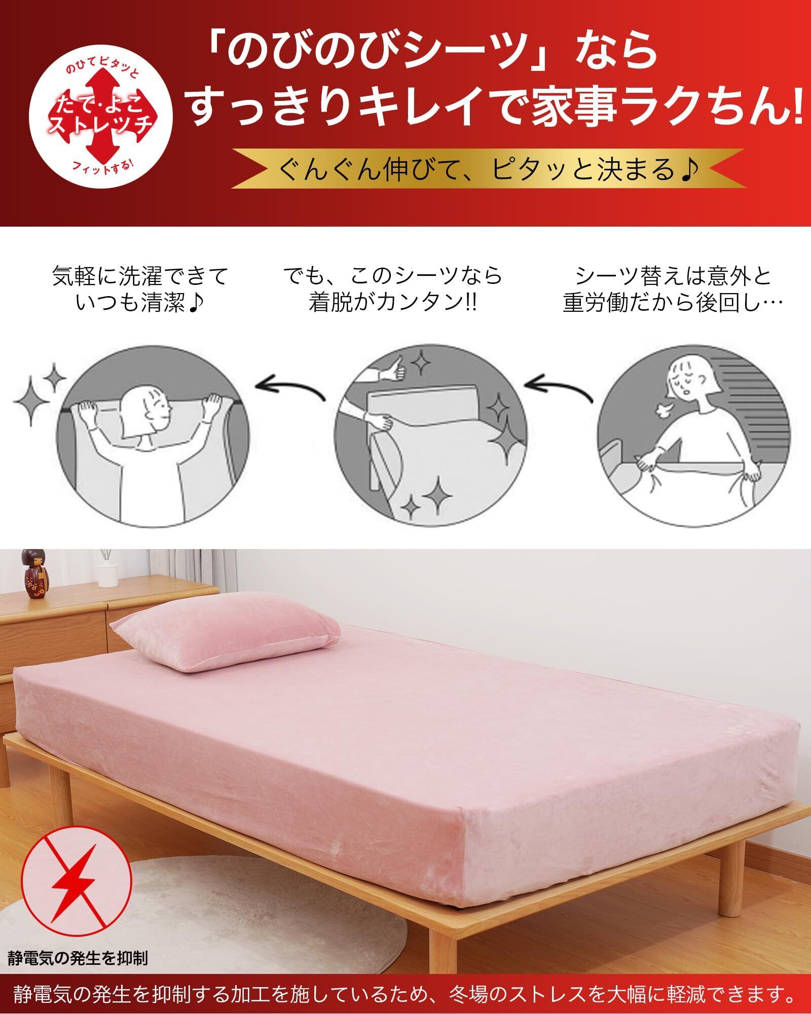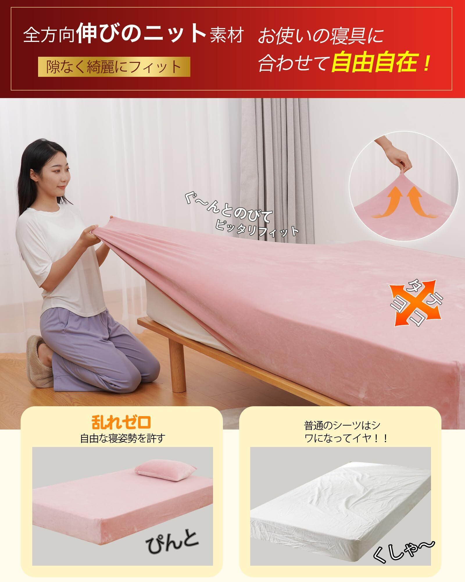 【数量限定】ボックスシーツ シングル 冬 シングル~セミシングル兼用 【のびのび超柔肌触 接触温感】あったか ベッドシーツ 冬 ベッドカバー 暖かいシーツ 冬用 シングル マットレスカバー 冬 静電気防止 マットレスシーツ フィットシーツ 敷布団シーツ 冬用シーツ 抗菌防臭 着脱簡単 丸洗い可能 伸びる(幅80~100x長さ190~210cmxマチ5~25cm対応 ピンク)