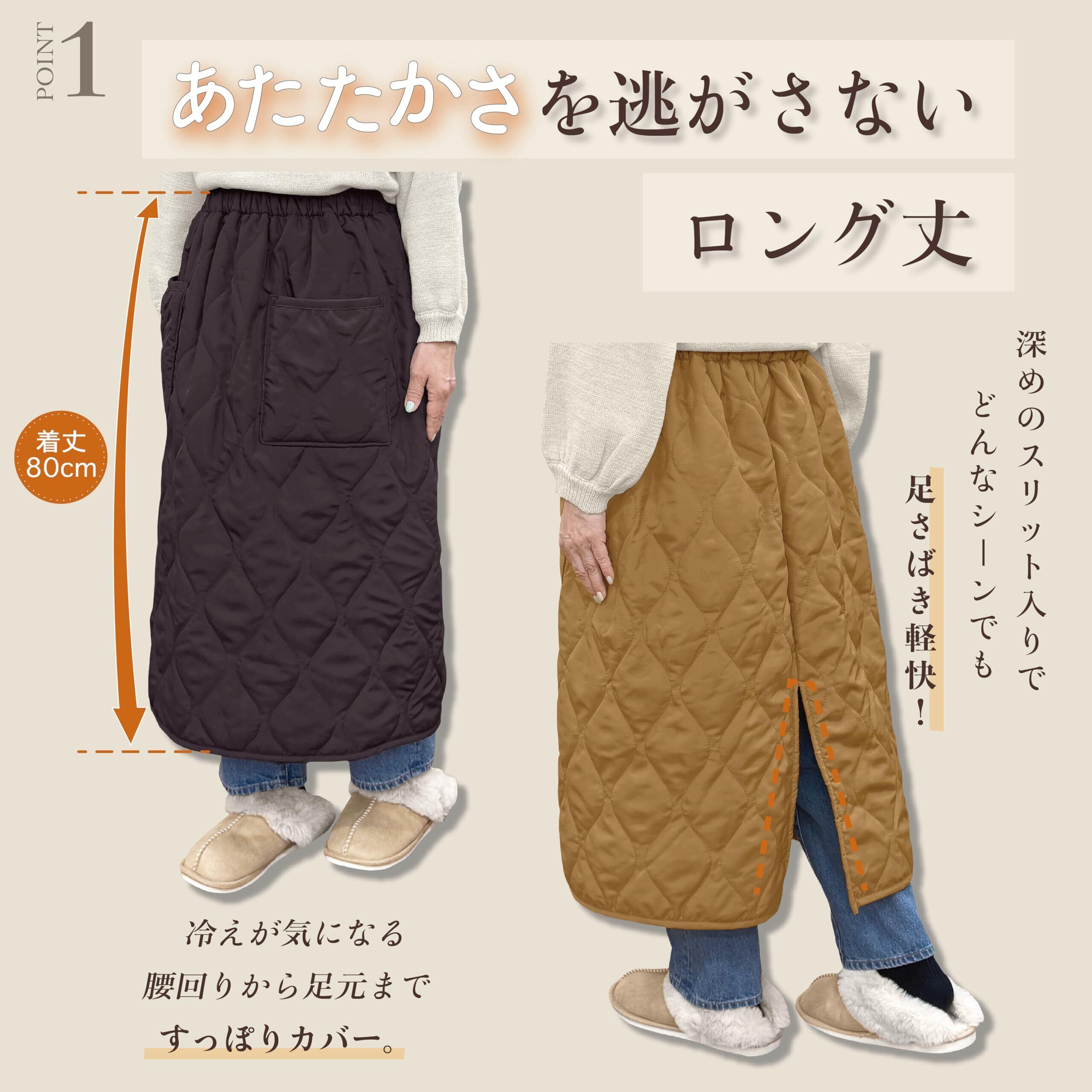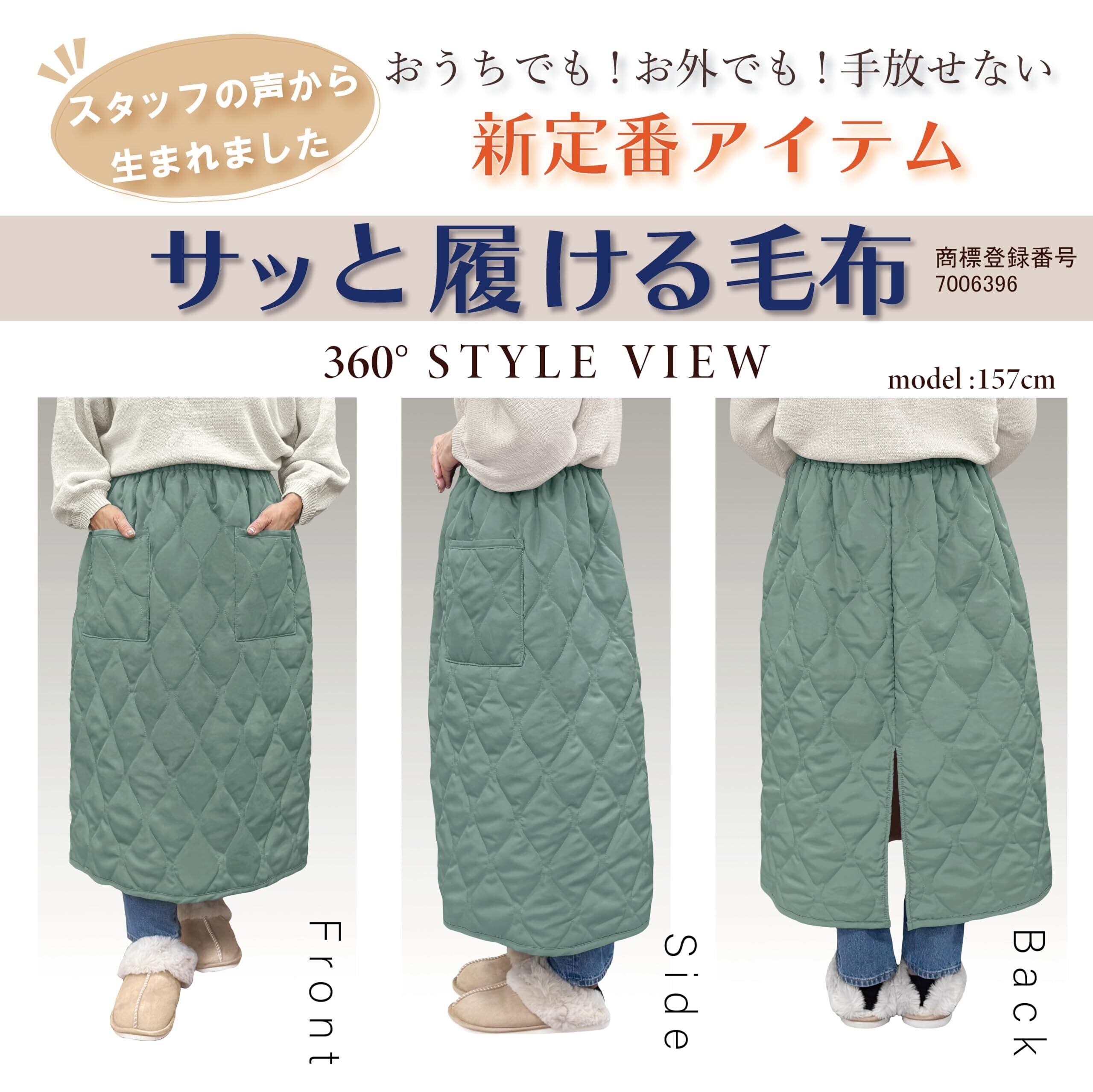 【サッと履ける毛布】ポイント①:サッと履いて冷えやすい足元を防寒。ウエストゴムで着脱簡単・はだける心配なし!ポイント②:足首まで暖かいロング丈。深めのスリットで足さばきバツグン!ポイント③:大容量ポケット付き。十分な深さがあるので作業中でも中身が飛び出す心配がありません。