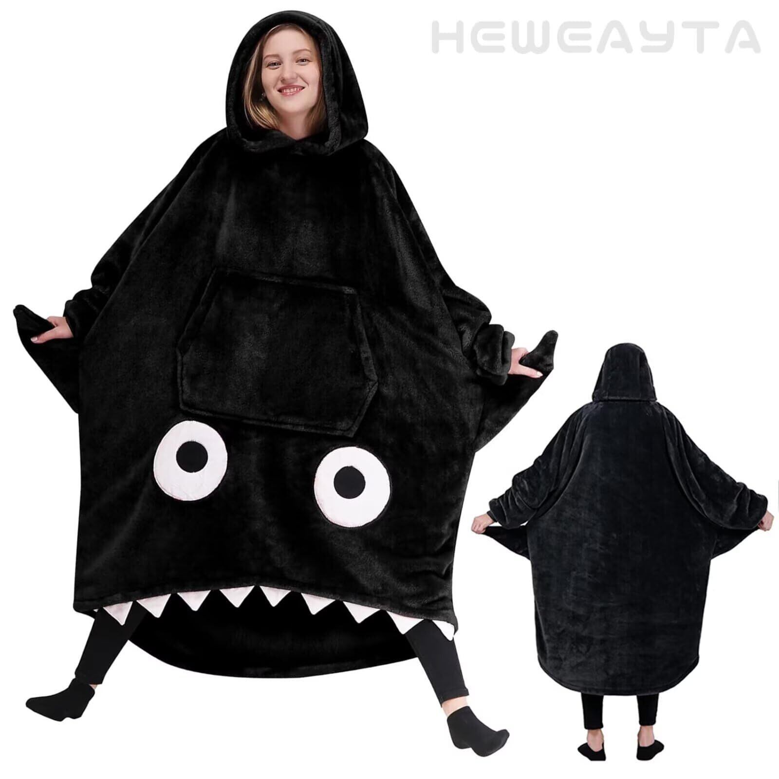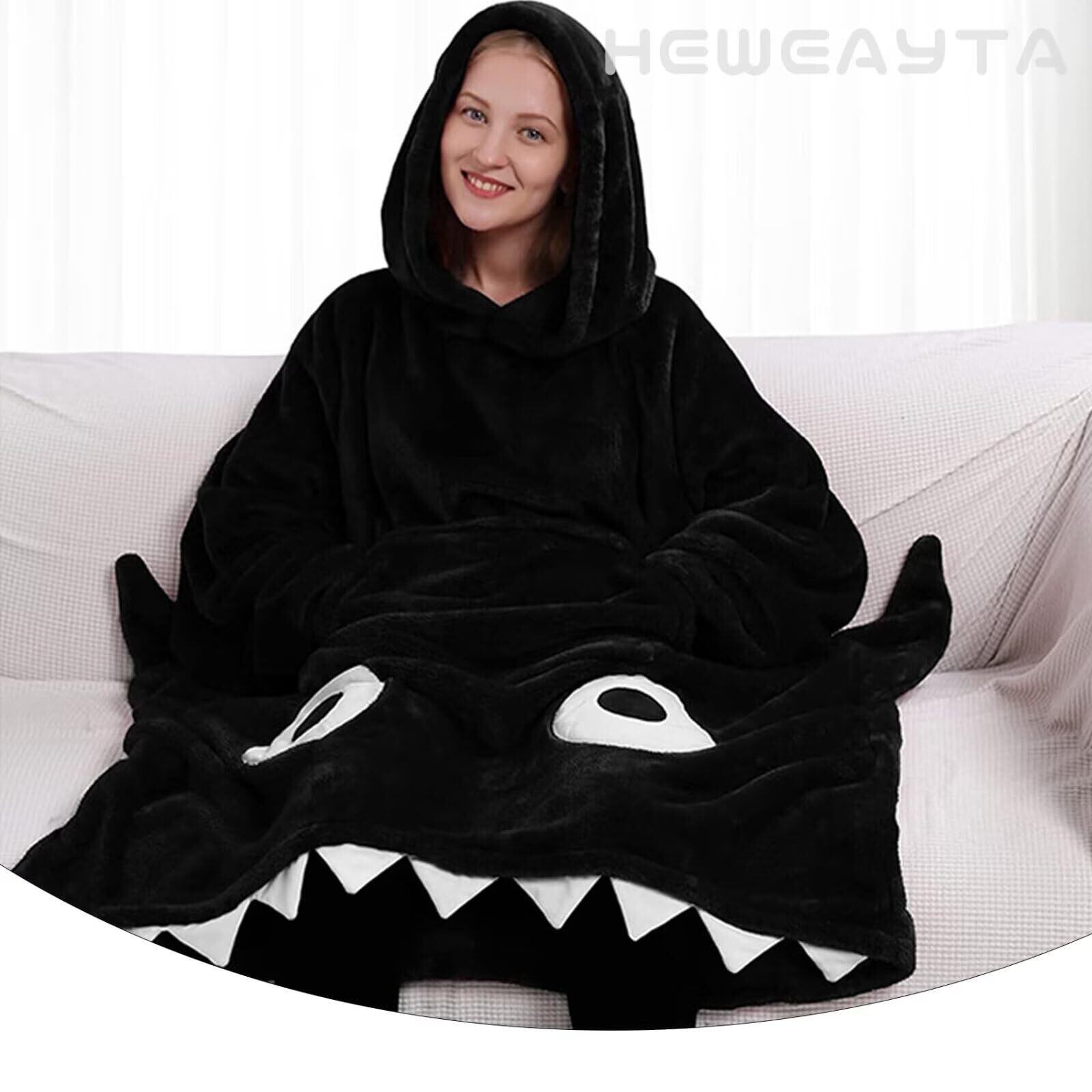 【新着商品】[HEWEAYTA] 着る毛布 ルームウェア レディース 冬 - 着るブランケット 厚手 フード付き 長袖 ロング丈 ポケット付き もこもこ サメ 男女兼用 暖かい