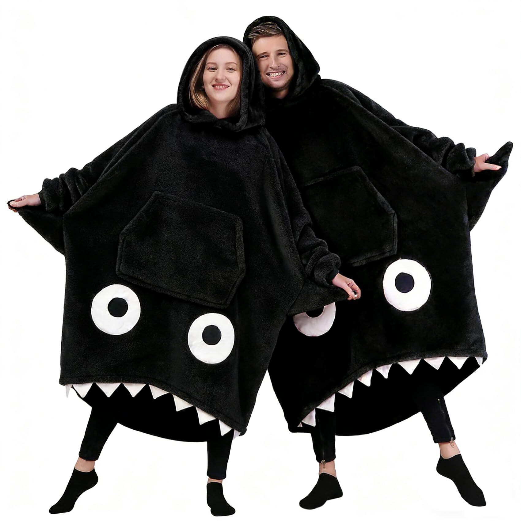[HEWEAYTA] 着る毛布 ルームウェア レディース 冬 - 着るブランケット 厚手 フード付き 長袖 ロング丈 ポケット付き もこもこ サメ 男女兼用 暖かい