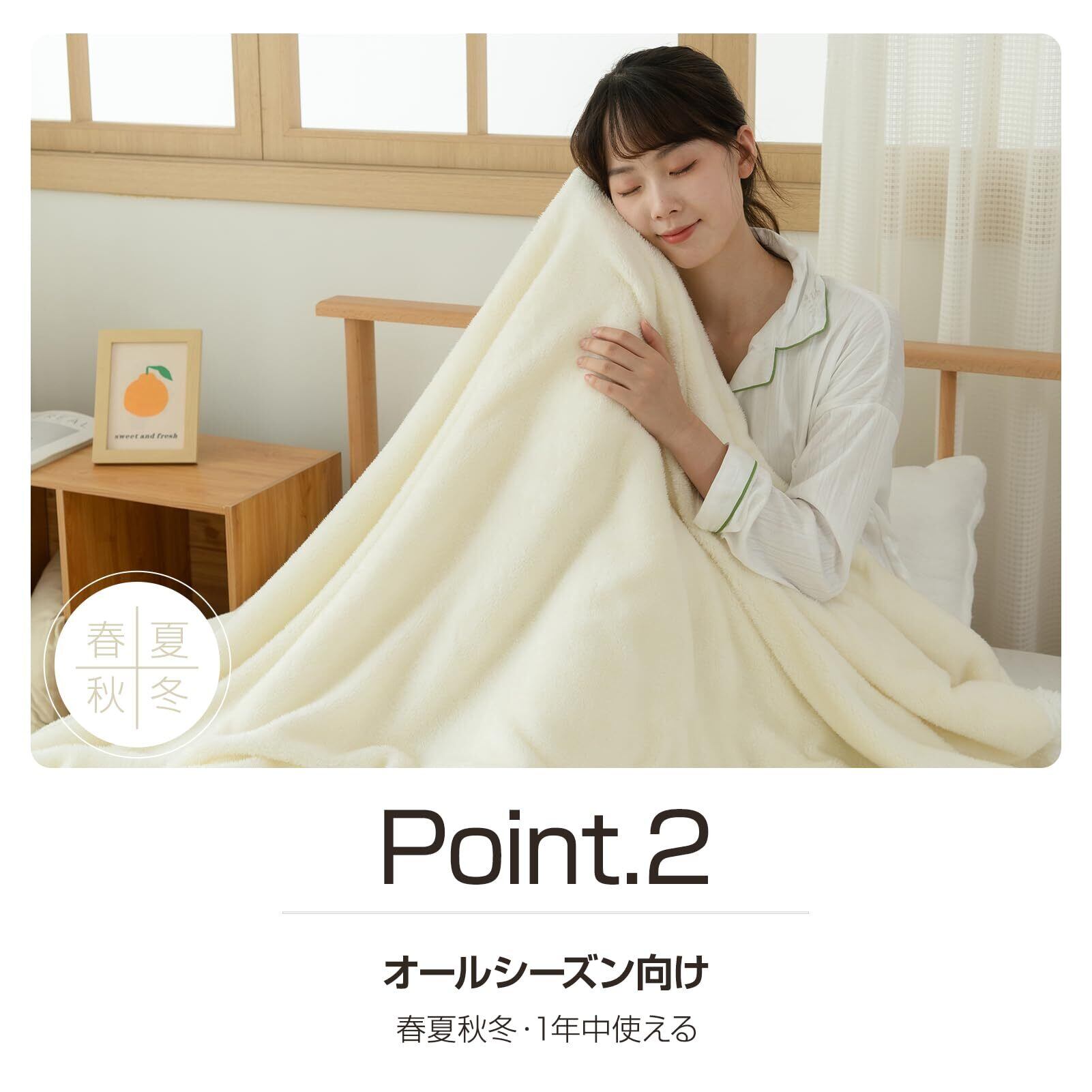 【オールシーズン向け】程よい厚ささ、薄づきず厚さ分けしません。春夏秋冬、一年中使える、最高のパートナーです。暖かくなってきたら毛布1枚で、体にフィットして冷たい空気をガードします。秋冬の不安定な気温時は肌掛け布団として使ったり、布団と組み合わせて使ったりして、温かみをもたらします。