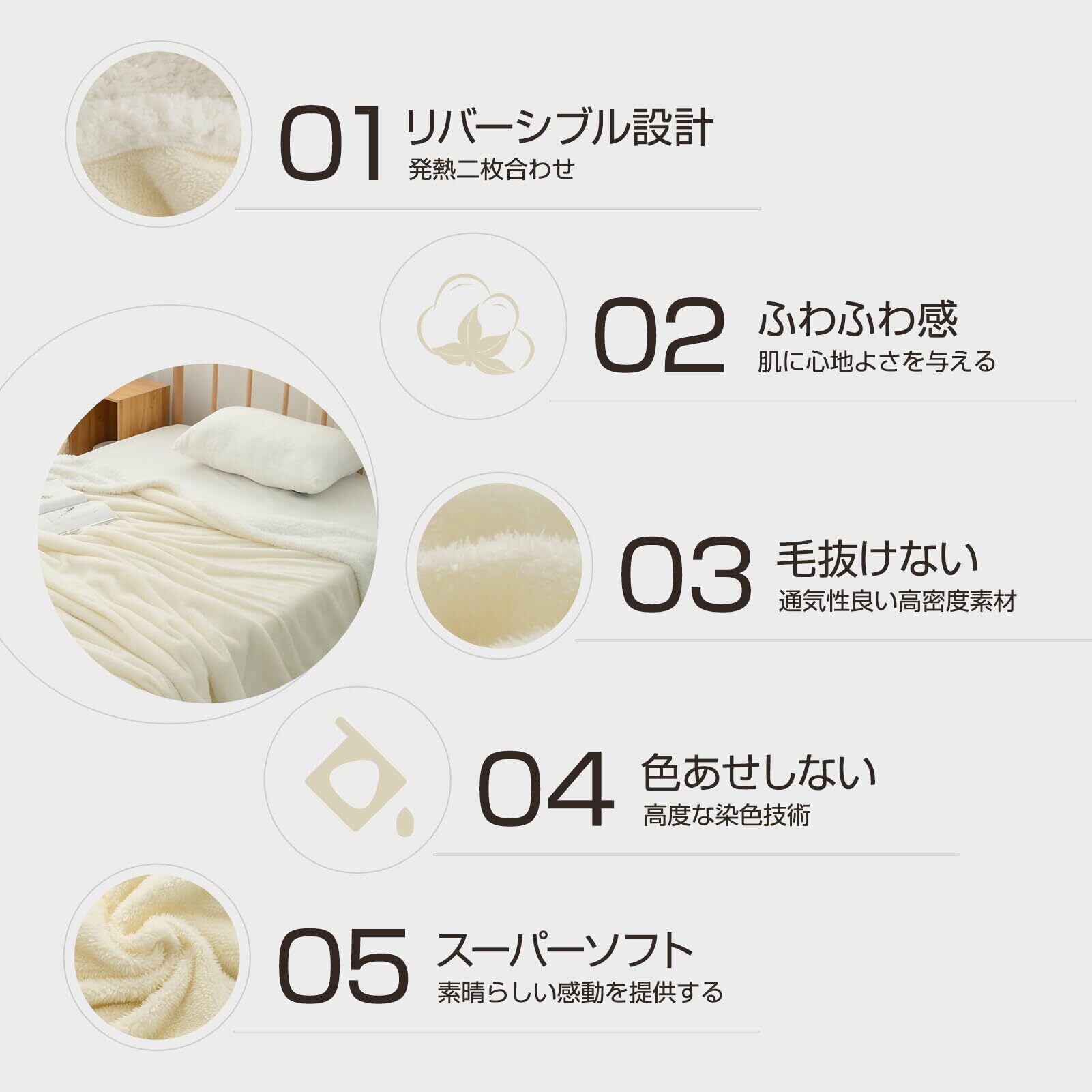 【商品情報】ダブルサイズ:約幅180cm*奥行200cm 【素材】表地:なめらかなフランネル生地。裏地:柔らかいシープ調ボア生地。『発熱二枚合わせ:ダブル蓄熱』『SEKマーク+ISO9001認証工場』『静電気防止加工』『抗菌防臭防ダニ』『吸湿速乾+丸洗いOK』【メーカー】初期不良対応 :お客様を満足させるように努めていきますので、万が一、製品不良などがあった場合は、対象となりますのでお気軽にお問い合わせください。