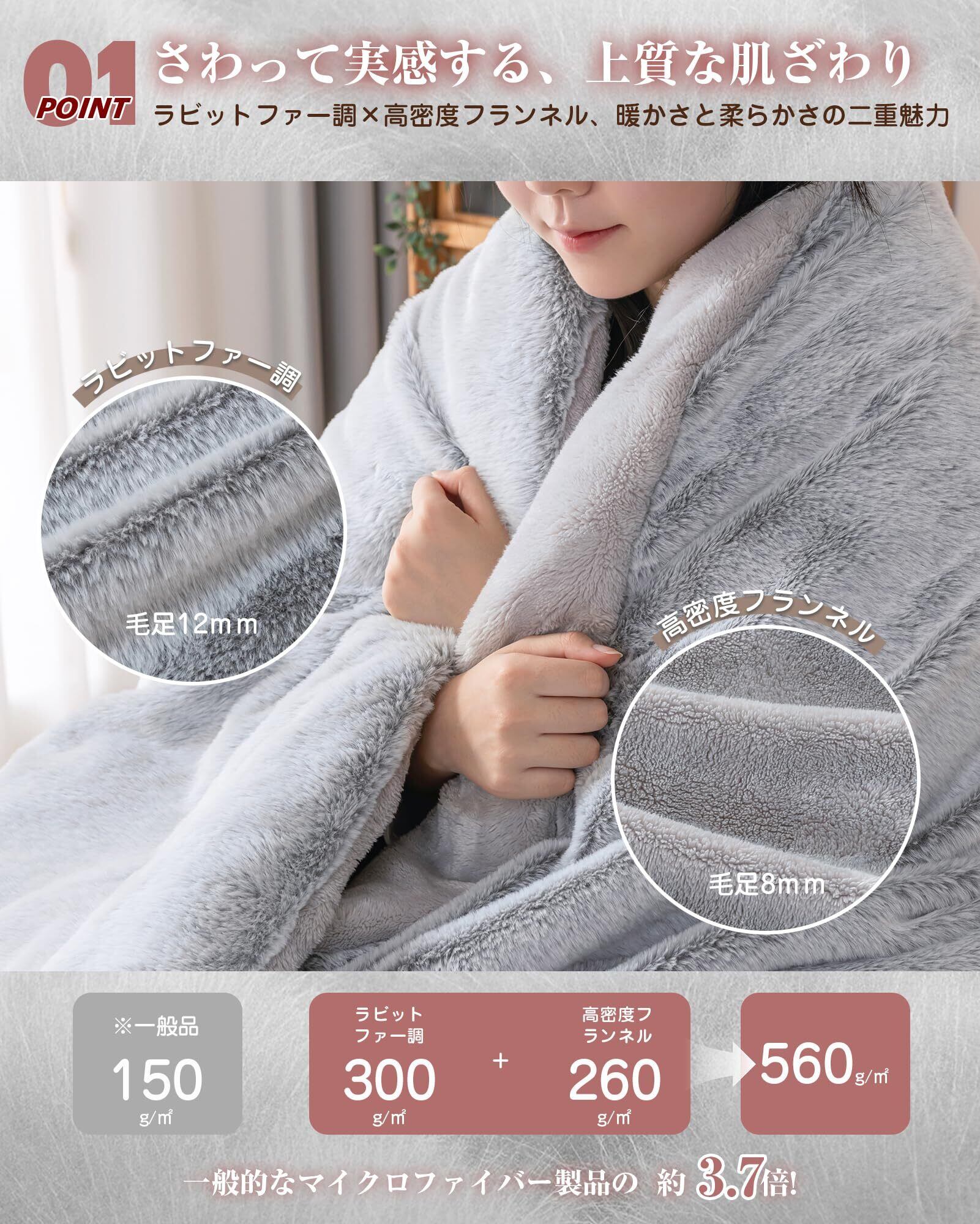 【商品仕様】140×200cm 表地:300g/㎡ラビットファー調 中綿:LockHeat速暖発熱繊維+エアリー中綿 裏地:260g/㎡高密度フランネル 【圧縮梱包】本製品は圧縮された状態で梱包されています。到着後はなるべく早く開梱することをおすすめいたします。開封後は商品を広げてたたいて、パタパタと空気を含ませることで本来のボリュームまで復元しますのでご安心ください。