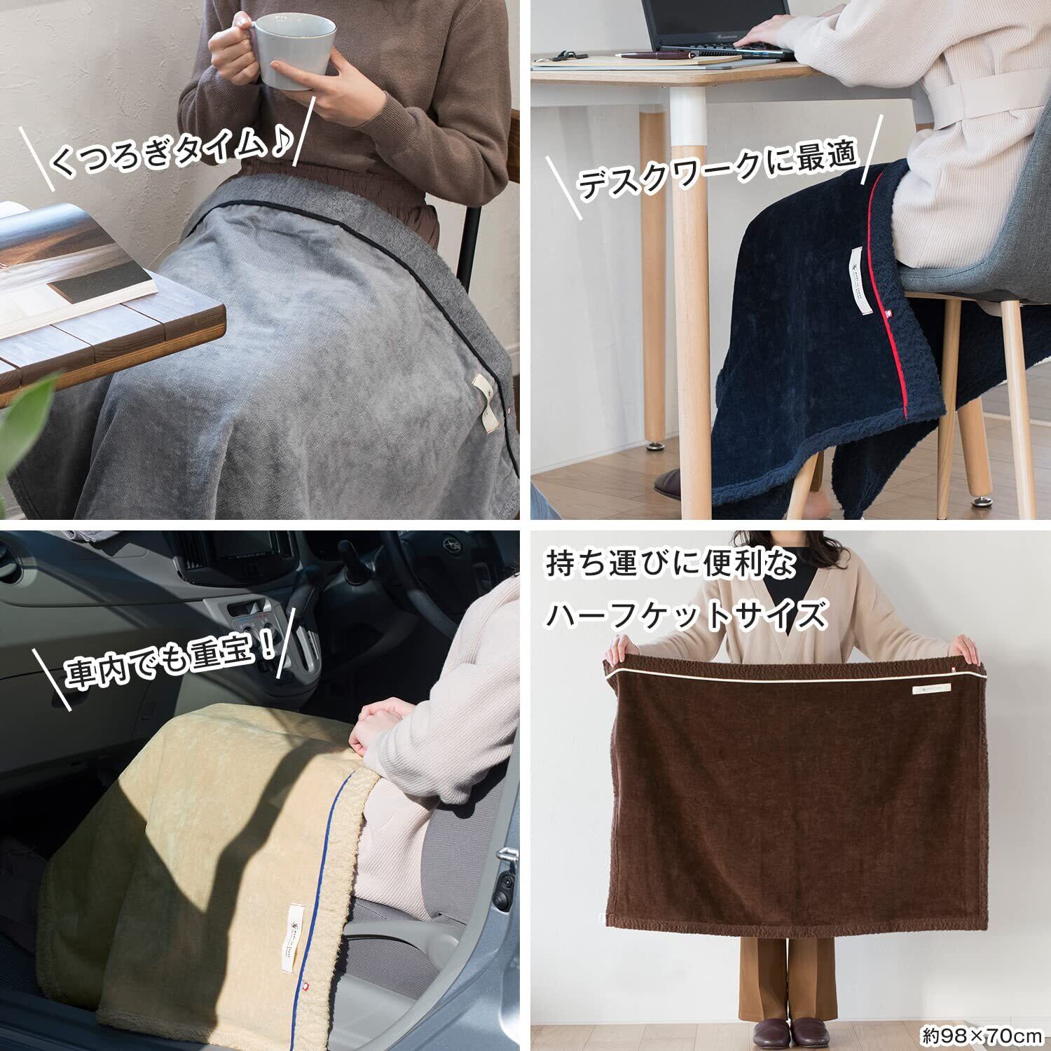 ブルーム 今治産 ひざ掛け ブランケット アヴニール 約98×70cm 日本製 綿100% 洗える リバーシブル シープ加工 ひざかけブランケット (ネイビー)