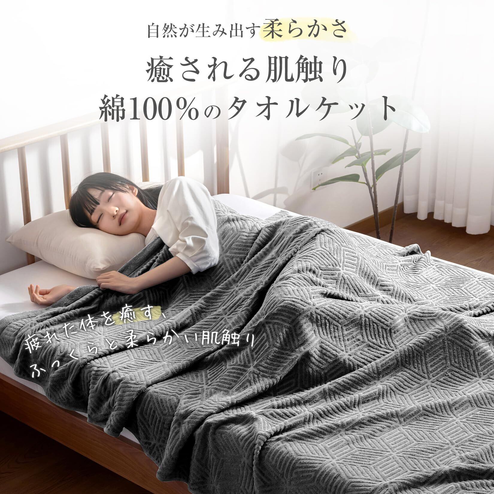 【新春セール】Housecover タオルケット シングル ブランケット 綿100% コットン 柔らかい ふんわり 吸湿速乾 汗やムレによる不快感を抑えて 抗菌防臭 洗える エアーケット キルトケット 肌掛け 軽量 オールシーズン快適 冷房対策 毛玉が出ない 毛布 140×200cm グレー