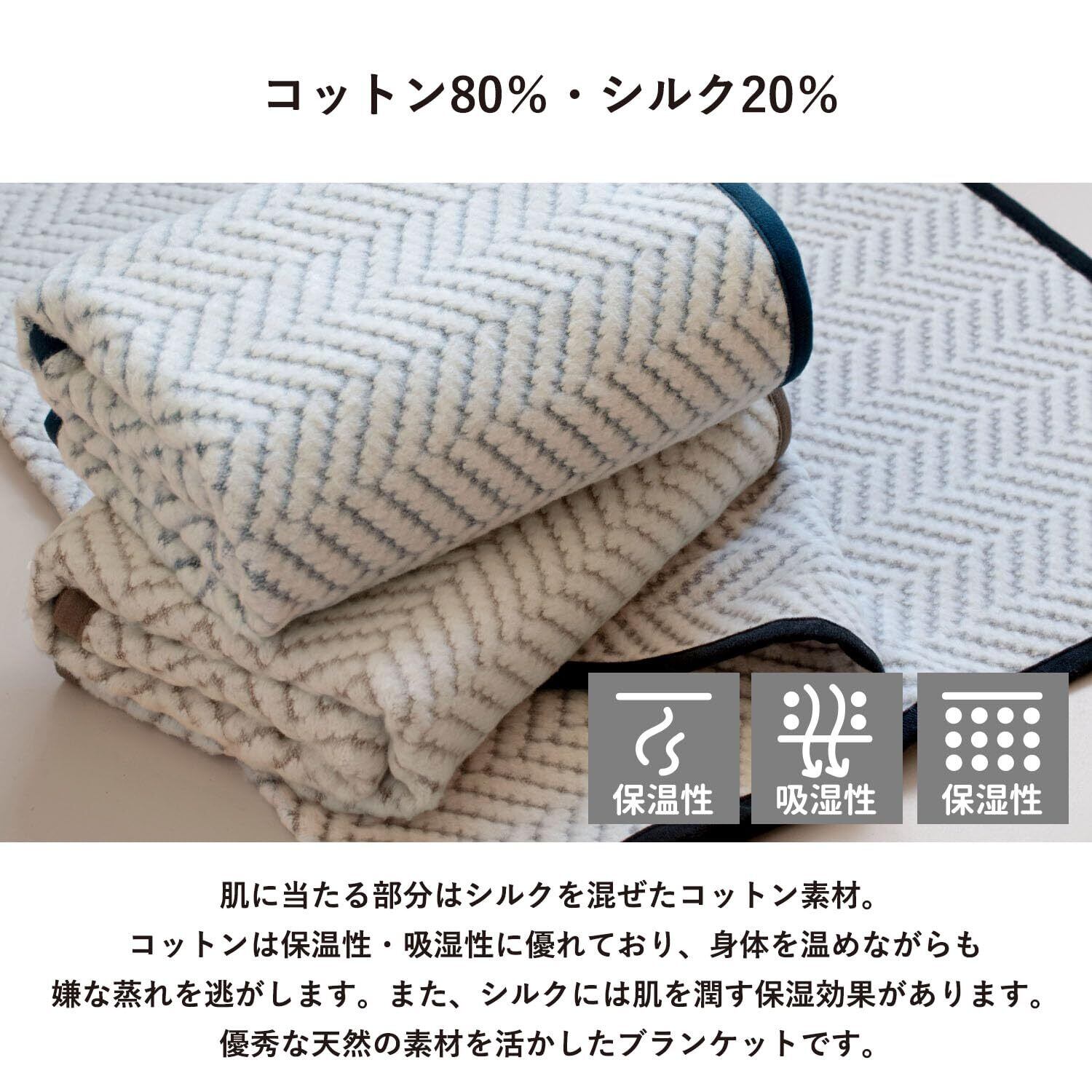 肌が触れる部分にシルク入りコットンを使用。優しい肌触りと温かさが特徴のブランケットです。