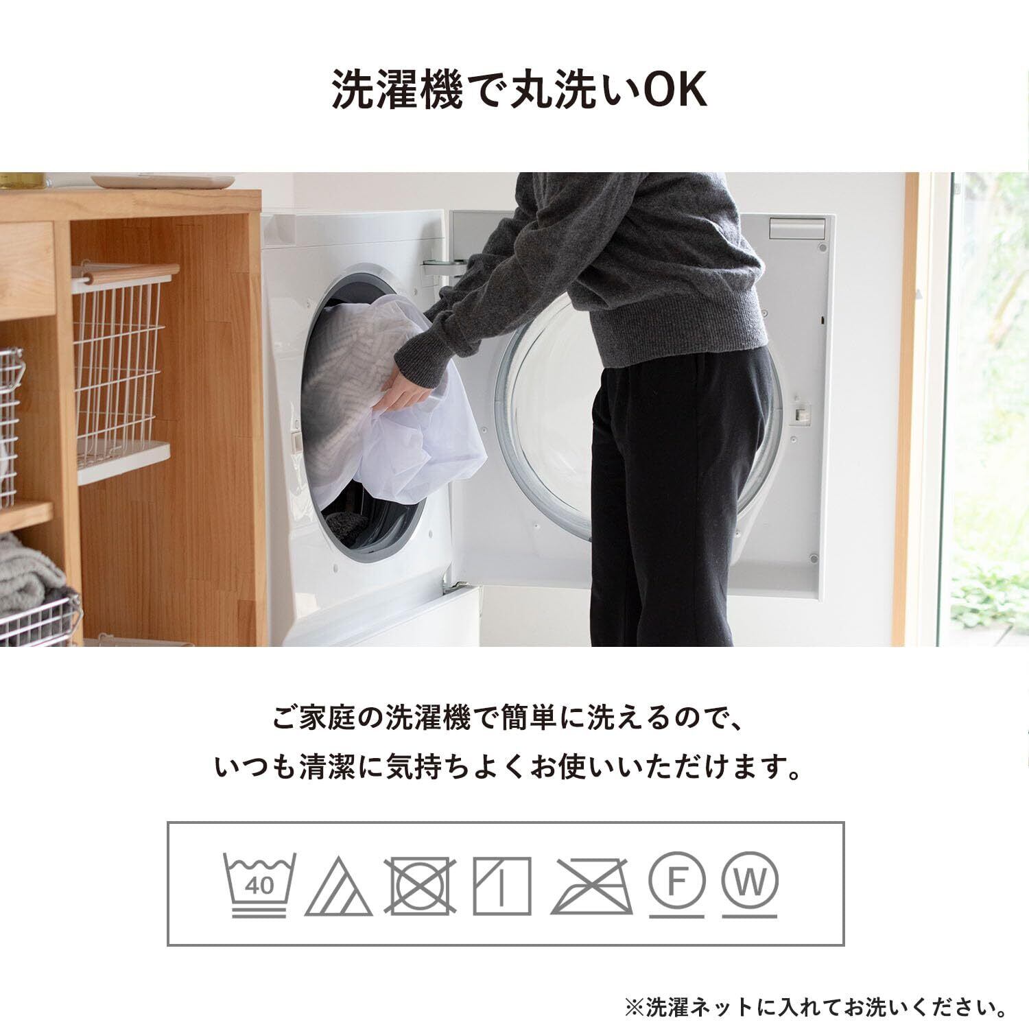 【洗濯機使用可能】ご家庭の洗濯機でネットに入れてお手軽に洗濯ができます。日陰での吊り干しをお願いいたします。タンブル乾燥や塩素系漂白剤のご使用はお控えください。