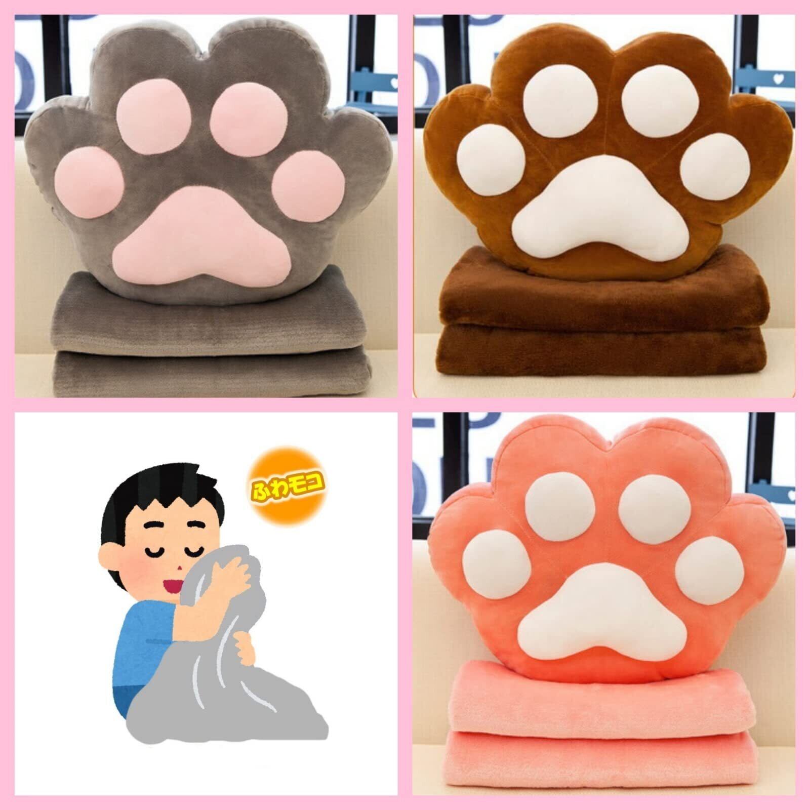 肉球デザインのクッションは抱き枕、ブランケット、毛布、ぬいぐるみ等、いろいろな場所でいろいろな使い方がで出来る、1つあると とても重宝するアイテムです。