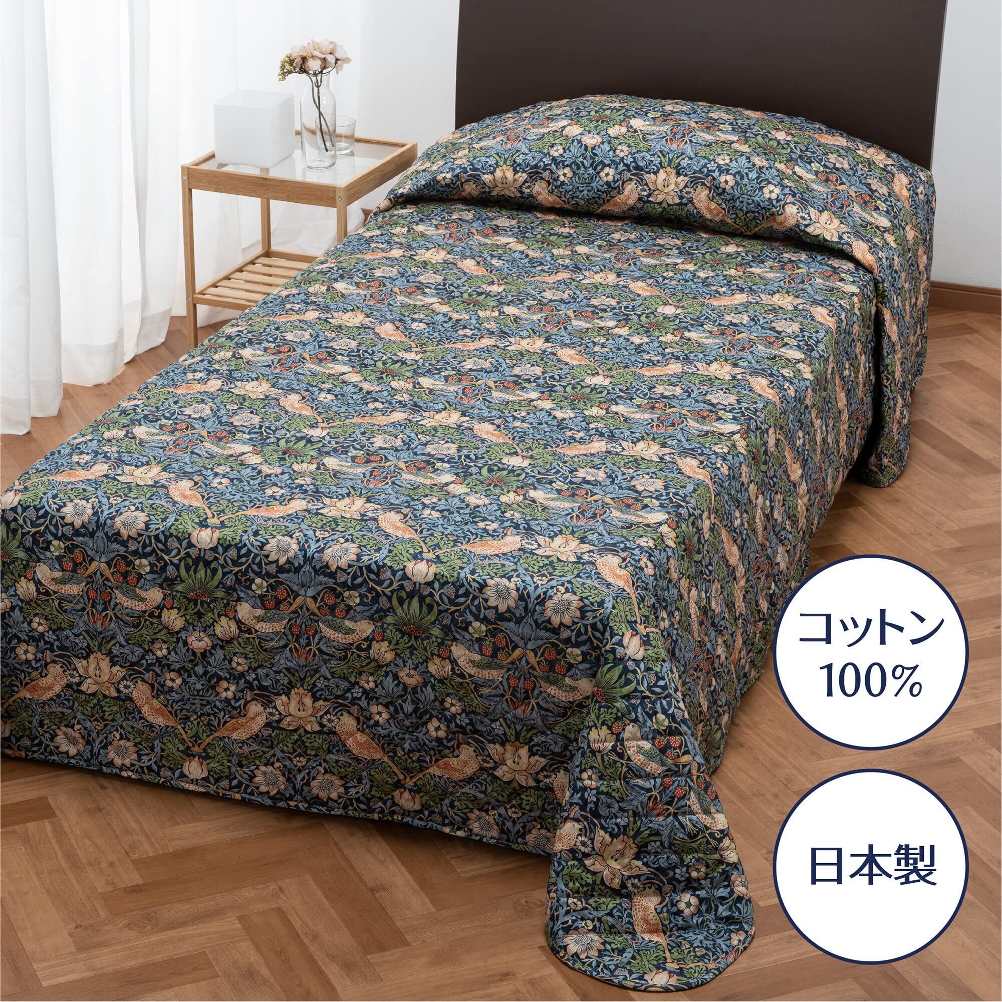 nishikawa【西川】 ベッドスプレッド シングル 185X275cm 綿100%のやからか生地 モリスギャラリー いちご泥棒 洗える 日本製 ネイビー PG53192600