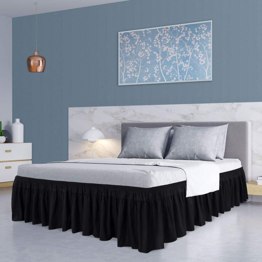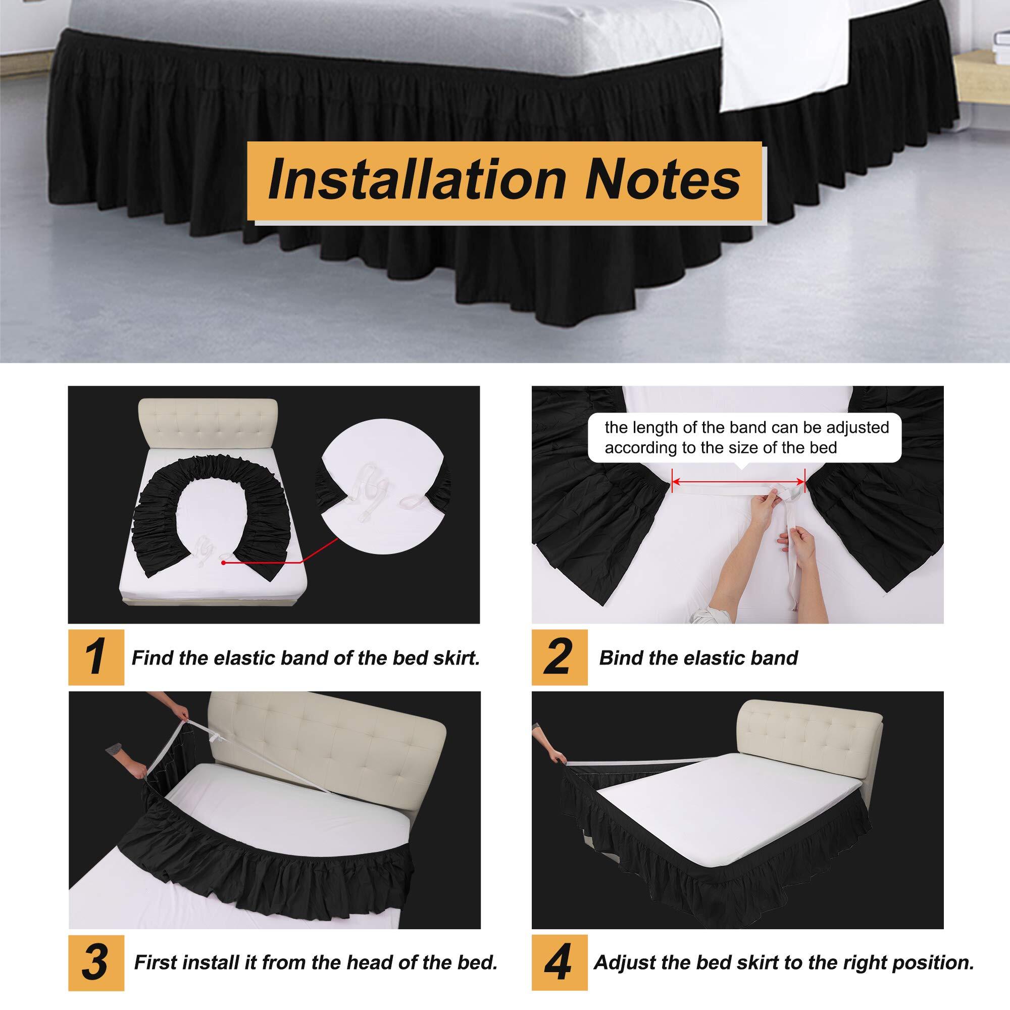 PiccoCasa ベッドスカート ポリエステル 無地 北欧 プリーツ かわいい 取り付け簡単 ベッドカバー フリル 姫系 軽量 スカート丈40 cm ブラック 150*200cm
