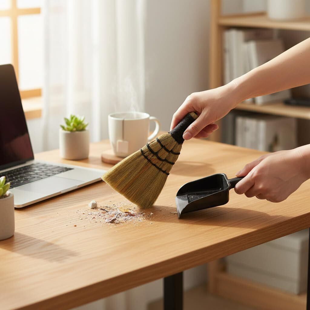 デスクやテーブル等に使用する小型の手ほうきです