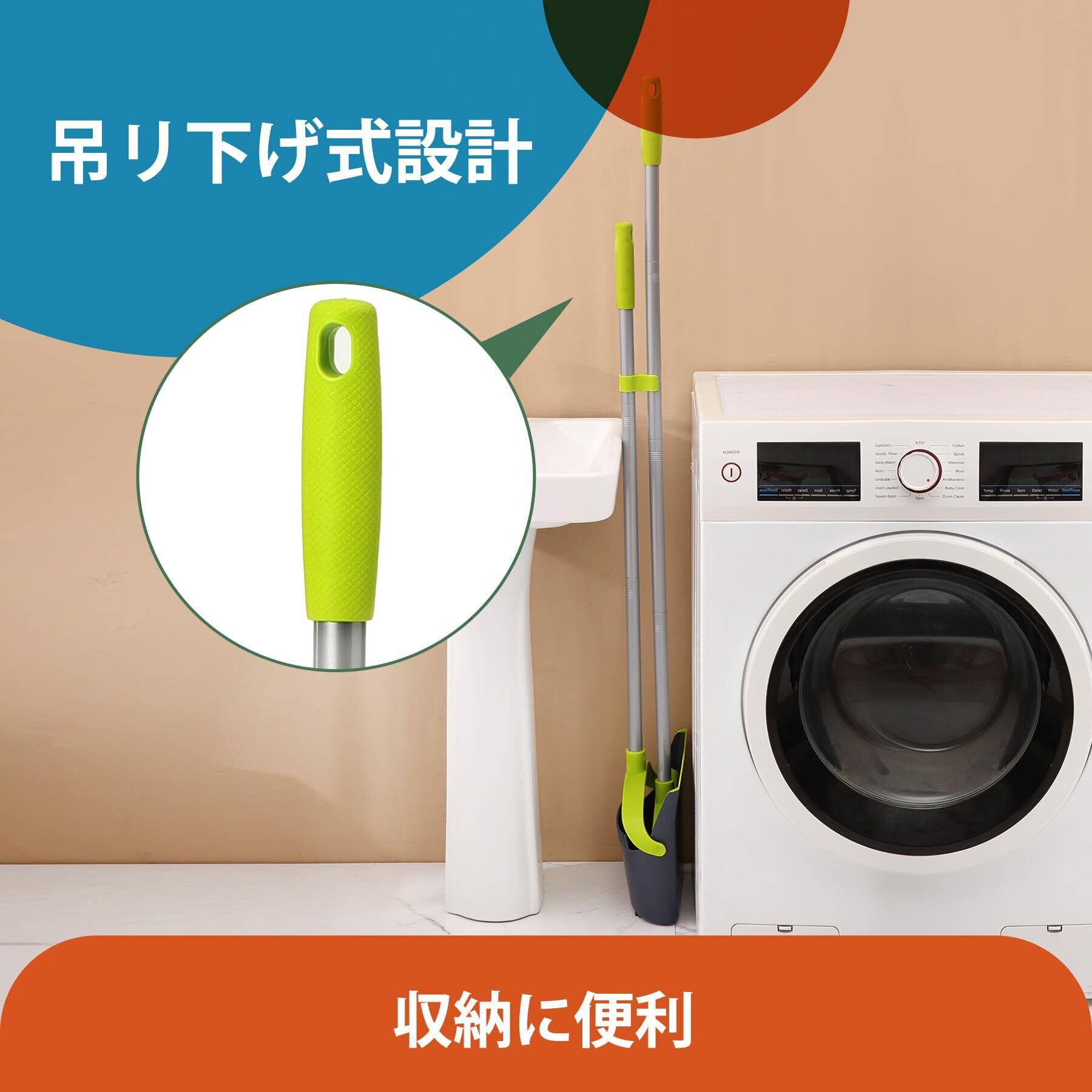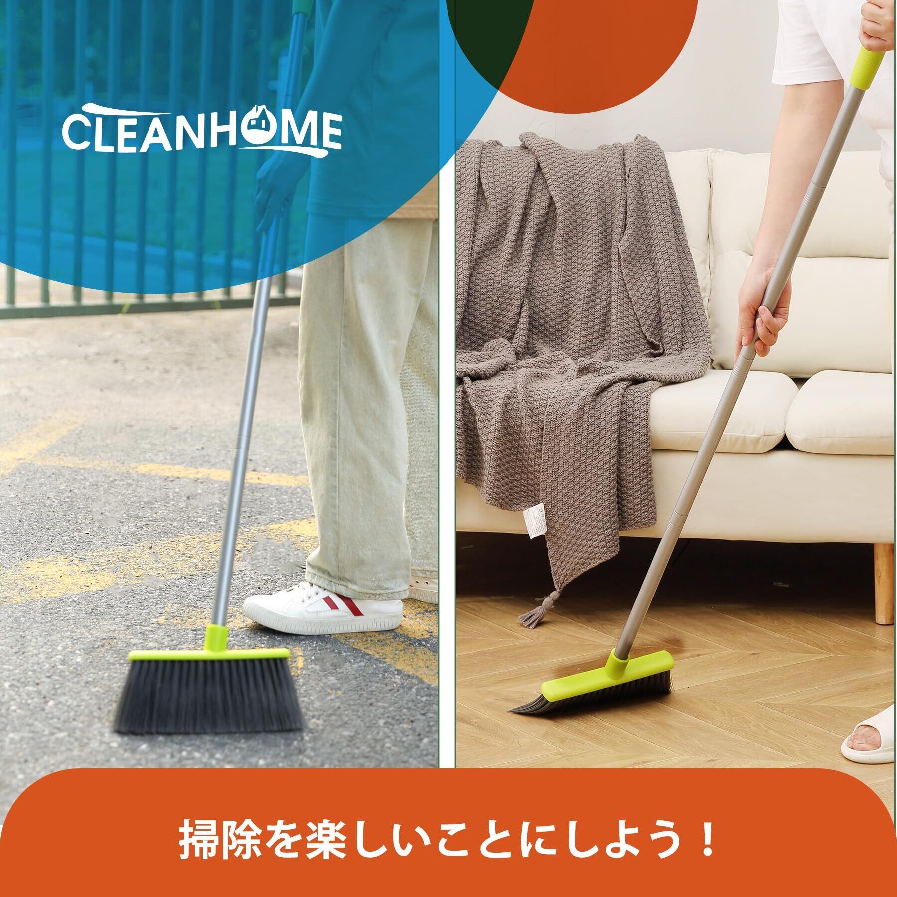 【自由調節 延長ポール付き】ほうきちりとりは人体デザインに適合、ほうきの高さは95〜127 cm、曲げの問題に別れを告げる、一本の延長ポールが付いていますので、ほうきにもちりとりにも使用でき、場所によってご自由に組み合わせます。例えば、天井を掃除する時は延長ポールを使用して長さは127cmになります。【適用場所】おしゃれなデザインで幅広く使用され 石床も木床も、部屋、屋外、玄関、ベランダ、美容室、コンビニ、会社、庭、ガレージ、ペットショップ 学校どが掃除できます。