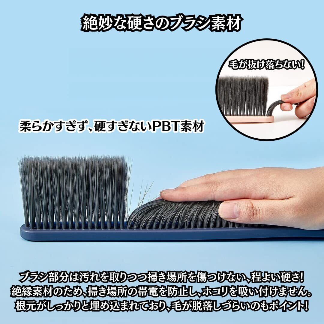 【絶妙な硬さのブラシ素材】ブラシ部分はソフトなPBT樹脂で、汚れを取りつつ掃除場所を傷つけない程よい硬さとなっております。絶縁素材のため、掃いた場所に静電気が発生してホコリを吸い付けてしまう心配がありません。ブラシの根元は深層埋込技術によりしっかりと埋め込まれておりますので、毛が脱落しづらく長く使えるのもポイント!