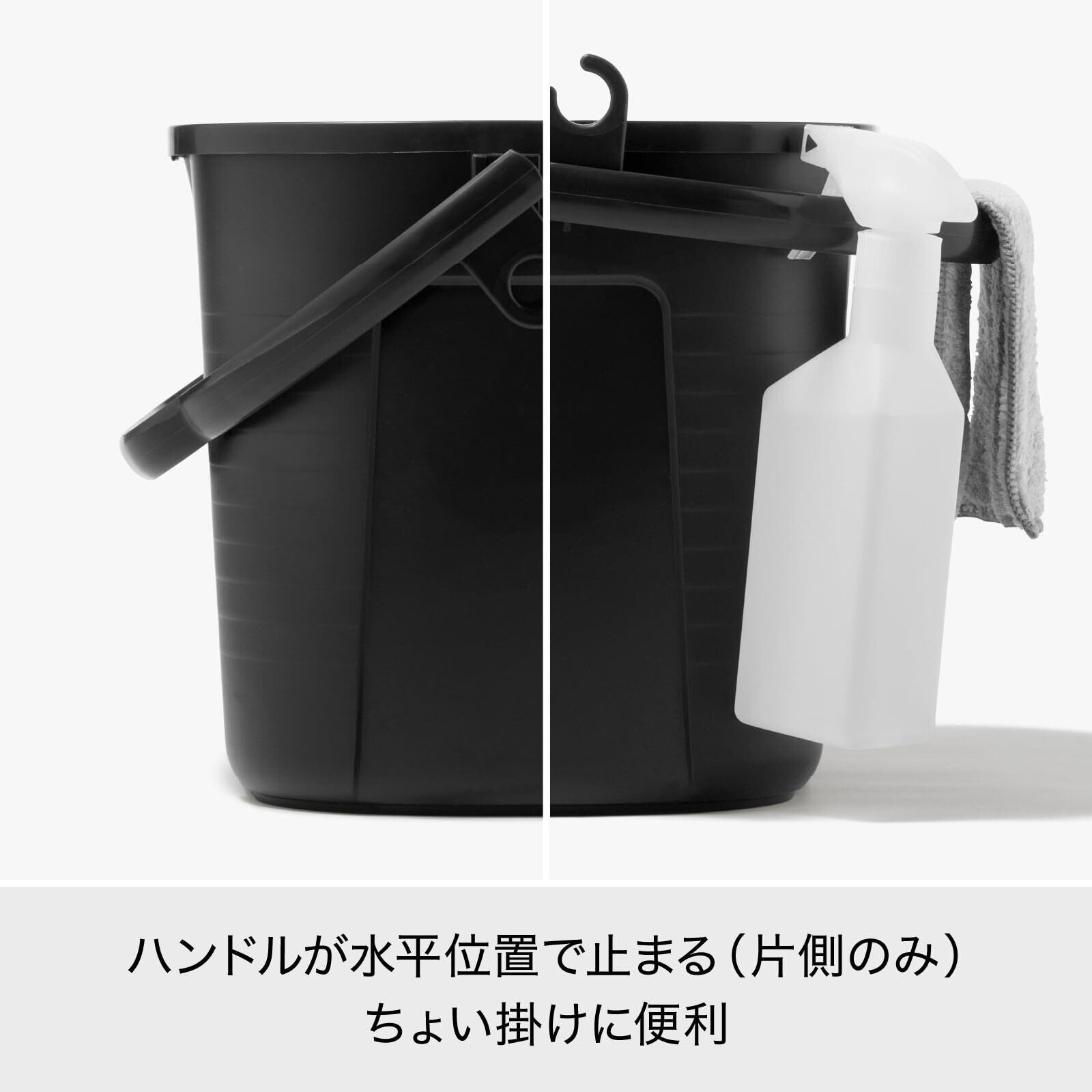 モップの幅に合わせた幅広サイズのバケツなのでモップがジャブジャブ洗える。 注ぎ口は2箇所あるので作業がしやすい。 ホース押さえが付いていて、ホースを差し込んだまま水を入れても飛び出さない。