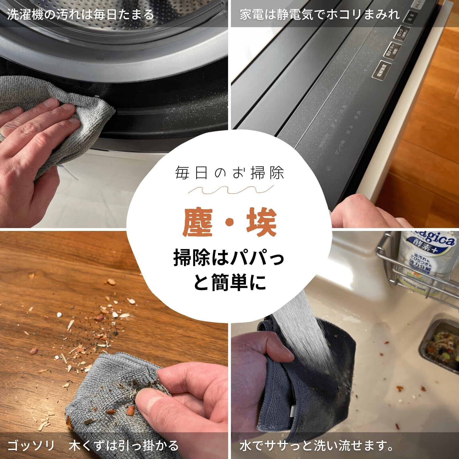 【綺麗に清潔に簡単に】毎日汚れるテーブルや水回りをスパッと拭き取ったら、鏡や窓、家具家電もお掃除糸くずや拭き跡を残しにくいのでササっと片づけます。通常のタオルより耐久性は高く、乾くのも数倍早いので、雑菌が繁殖しにくく衛生的です。
