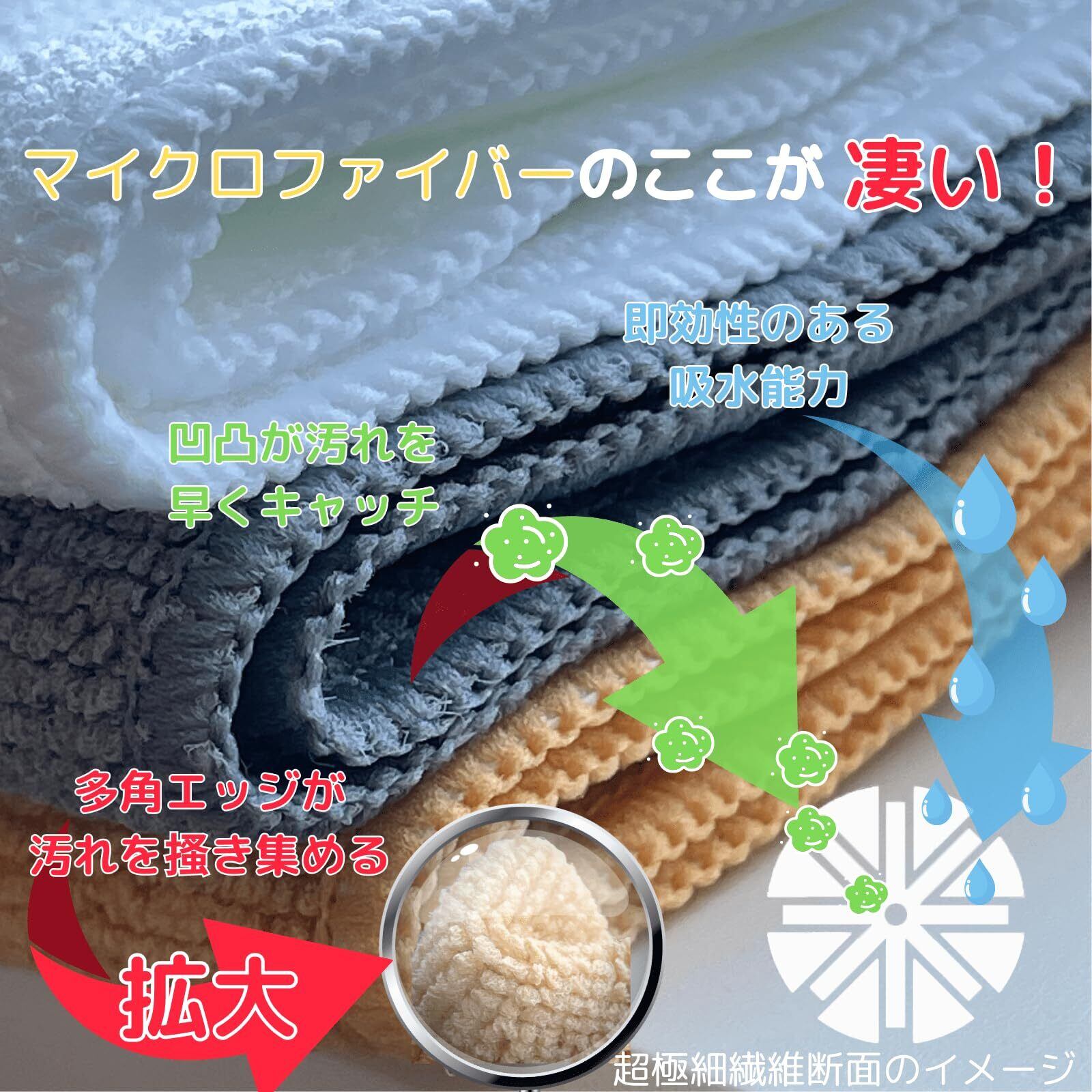 【掃除専用タオル】水拭き、乾拭き、油汚れ、耐久性、衛生面、吸水性、速乾性、衛生的、なのにお手頃な価格、、多機能なだけじゃなく全てが高い数値でお掃除に特化しています。