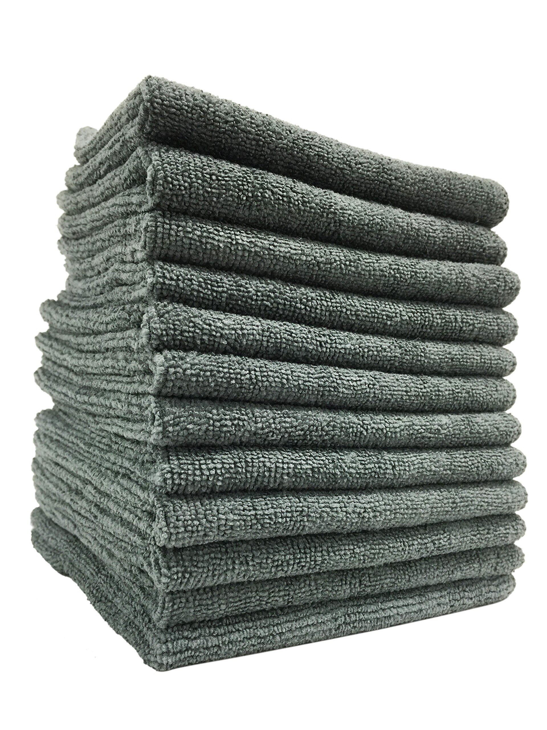 【人気商品】マイクロファイバー ふきん TARO FIBER 30x30cm グレー 12枚 超吸水 速乾 油汚れ 空拭き ほこり取り 小判 厚手 クロス 掃除 キッチン TARO WORKS