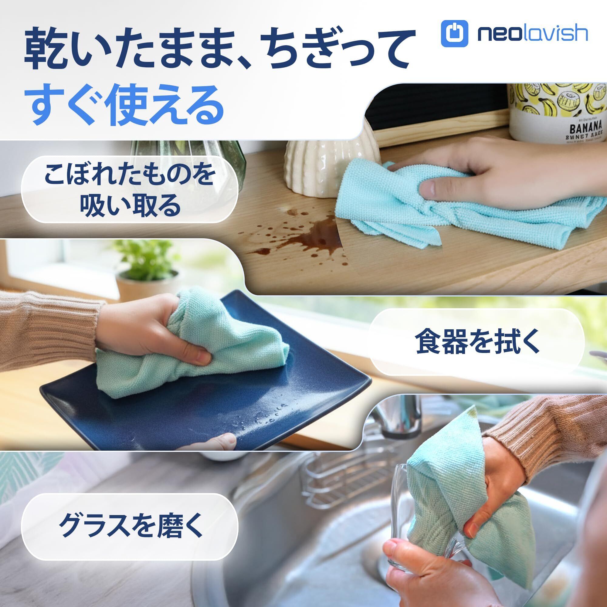 【2022最新】NeoLavish® Roll 洗って繰り返し使える 切り取り可能 マイクロファイバー ロールクロス|キッチンペーパー・ペーパータオル代用に【ブルー 25シート 30×30cm】