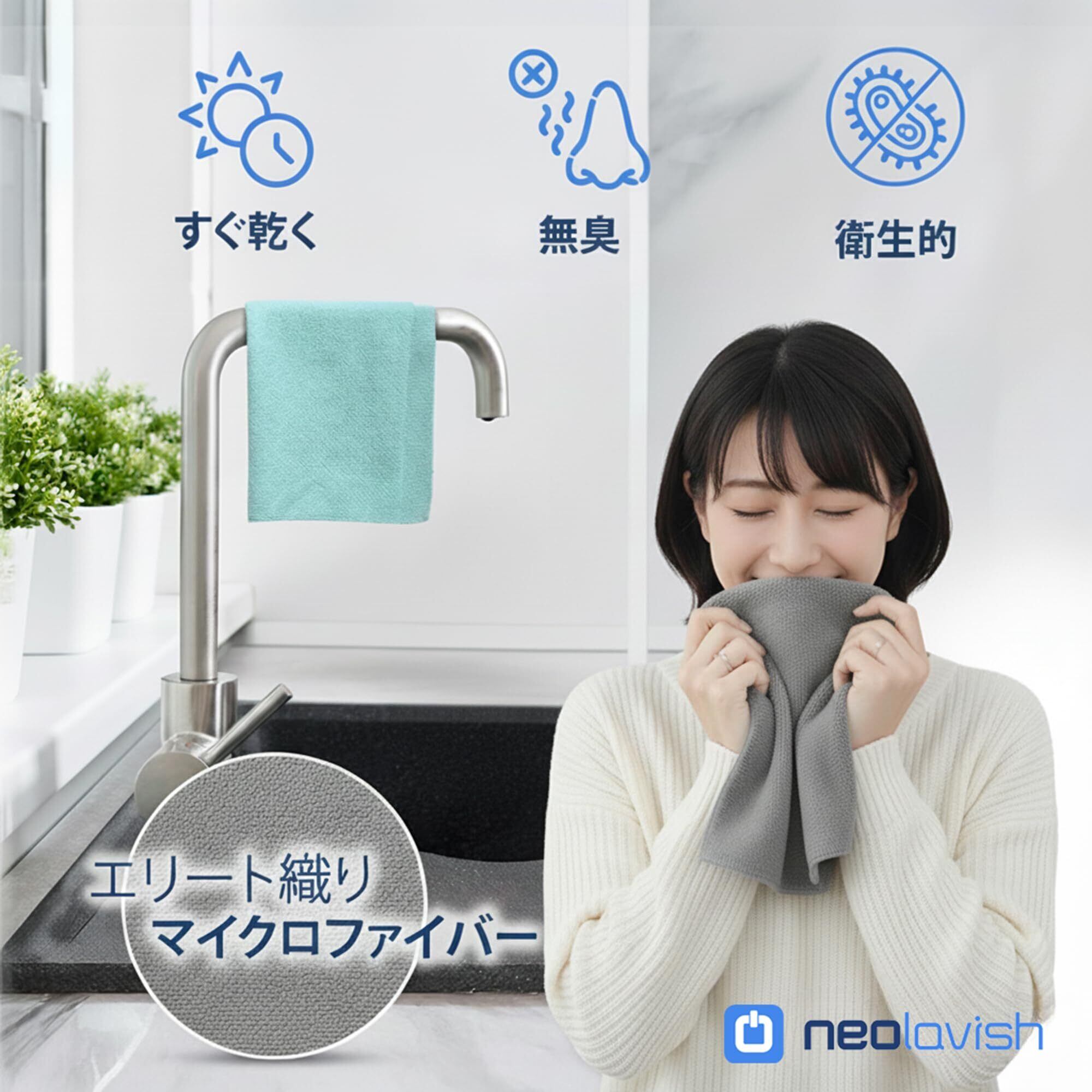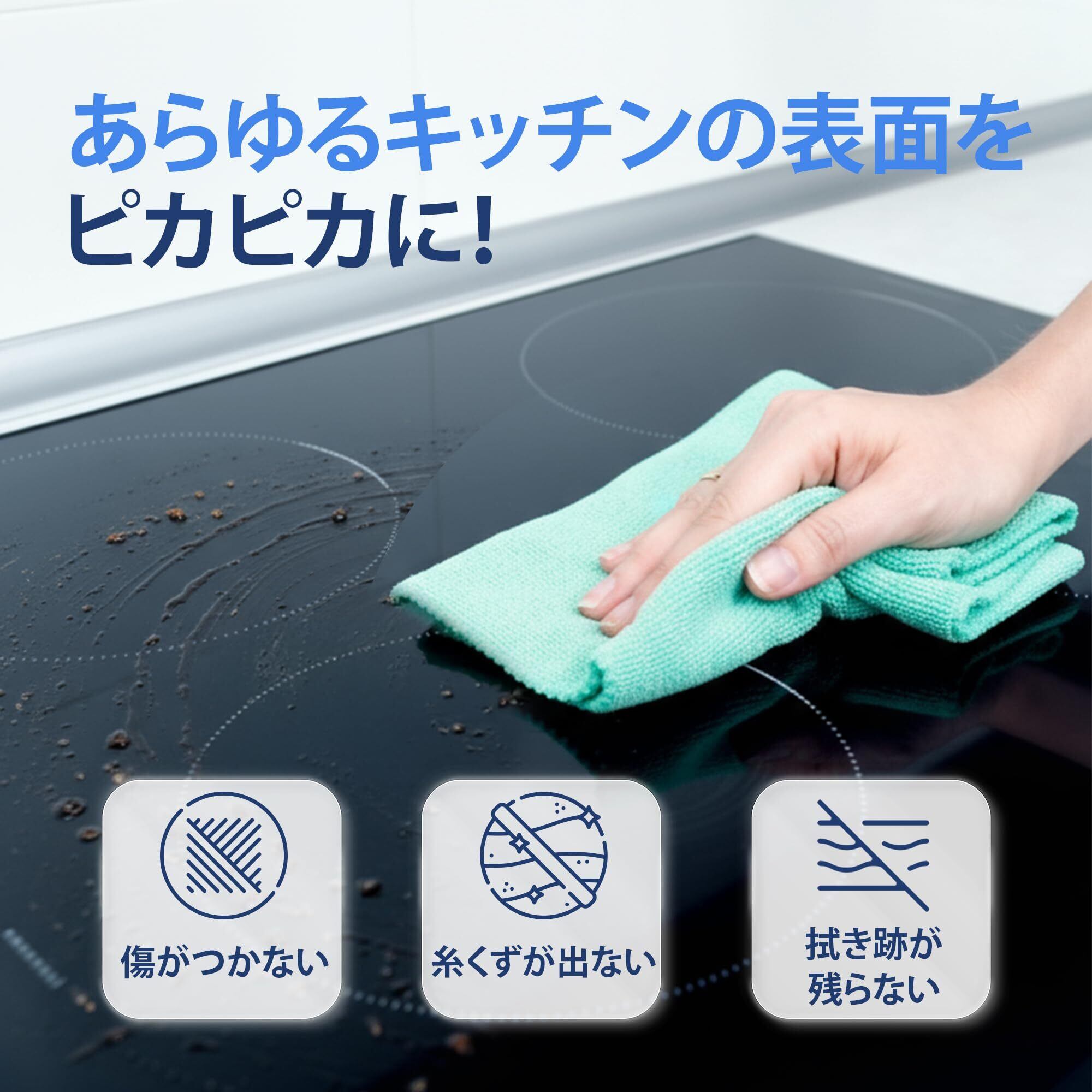 10倍の吸水力で油汚れもスッキリ拭き取り: 高密度マイクロファイバーが一般的なタオルの約10倍の吸水力を発揮。水や油も素早く拭き取り、キッチンカウンターやコンロ周りの掃除、食器拭きにも最適です。